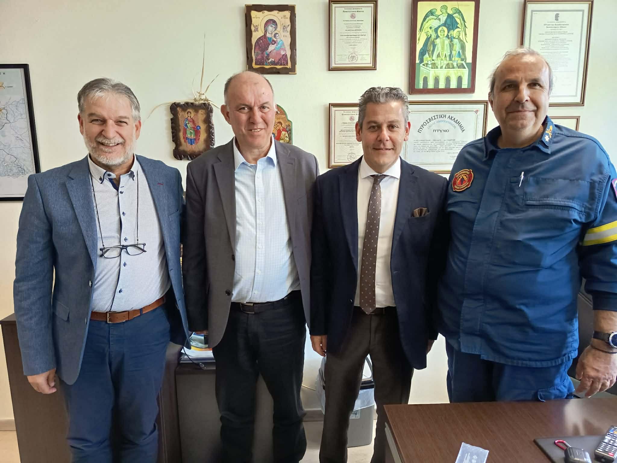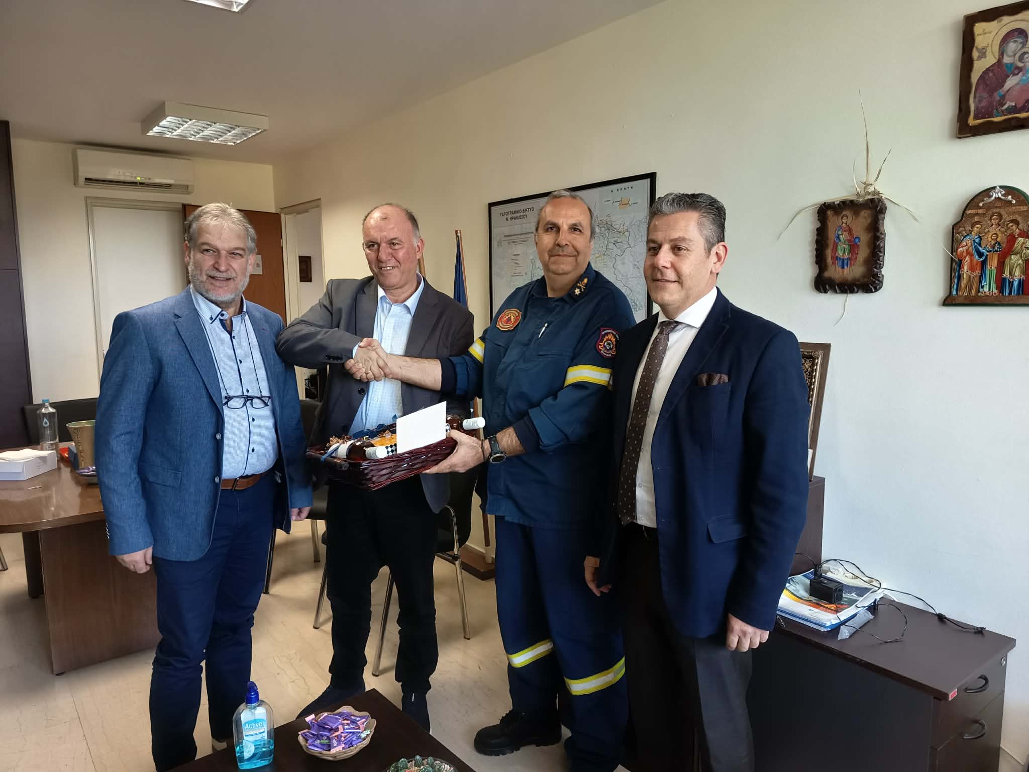 Ανταλλαγή ευχών έγινε και με τον Αντιπύραρχο Διοικητή ΠΕ.ΠΥ. Δ. Κρήτης Μιχαήλ Σεληνιωτάκη και στελέχη της Πυροσβεστικής Υπηρεσίας στο Ηράκλειο, κατά την διάρκεια της οποίας τα στελέχη της ΔΕΕΠ ενημερώθηκαν για τις ενέργειες που έγιναν από την Υπηρεσία προς όφελος των πολιτών.