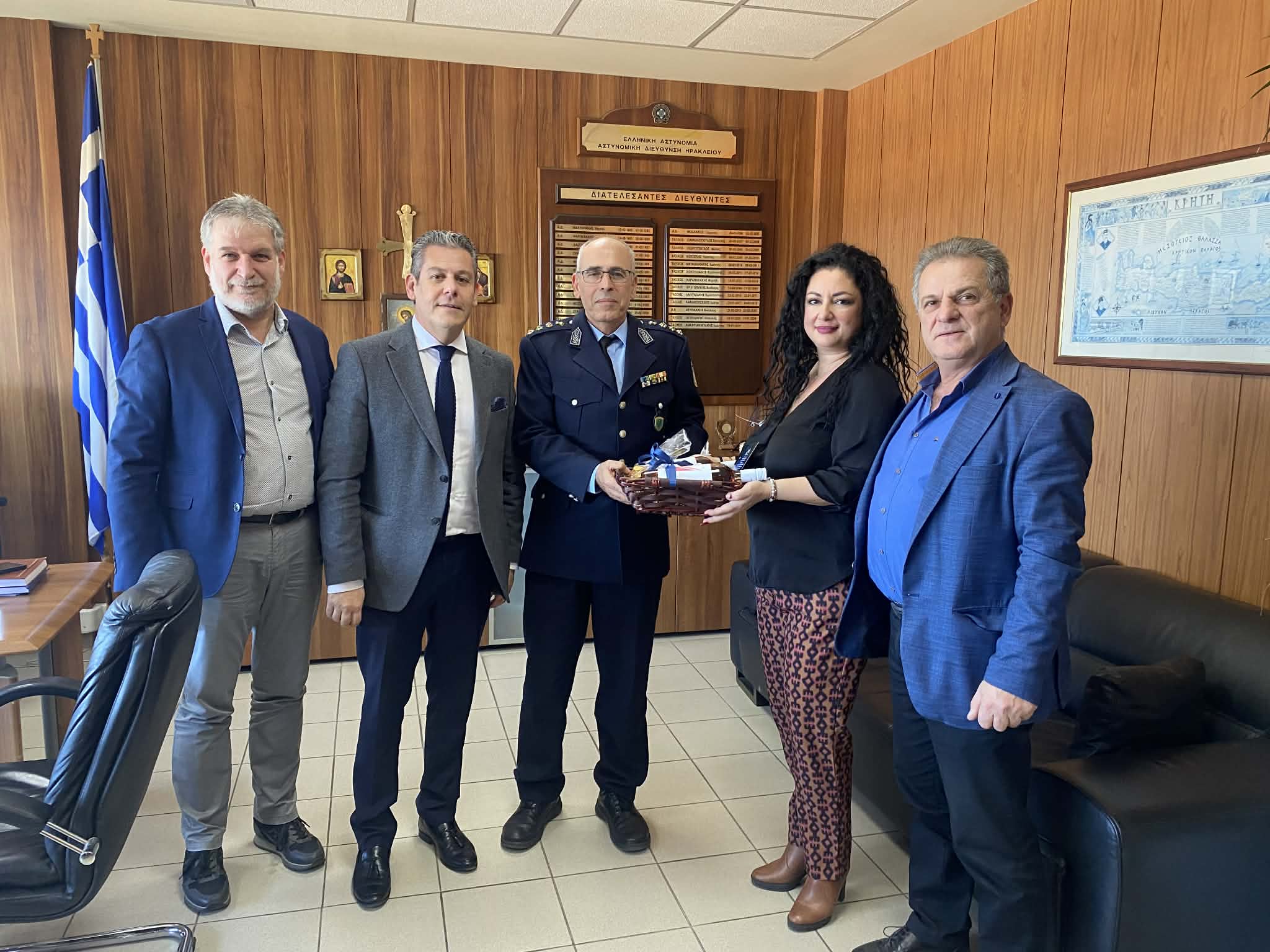 Επίσης ο πρόεδρος Κώστας Γιαννουλάκης της ΔΕΕΠ πλαισιωμένος από τους αντιπροέδρους Γιάννη Χατζηνικολάου και Αιμίλιο Παττακό, την Γραμματέα της ΝΟΔΕ Νεκταρία Μανίκα και τον Ταμία και τομεάρχη παραγωγικών φορέων και επιχειρηματικότητας Δημήτρη Γερωμαρκάκη επισκέφθηκαν την Αστυνομική Διεύθυνση Ηρακλείου στο μέγαρο της ΕΛΑΣ όπου συναντήθηκαν και αντάλλαξαν ευχές με τον Αστυνομικό Διευθυντή Μανόλη Χρυσό τον Διοικητή Ασφάλειας Ηρακλείου Γιώργο Βαρδάκη και στον Διοικητή Τροχαίας Στέλιο Καρακούδη.