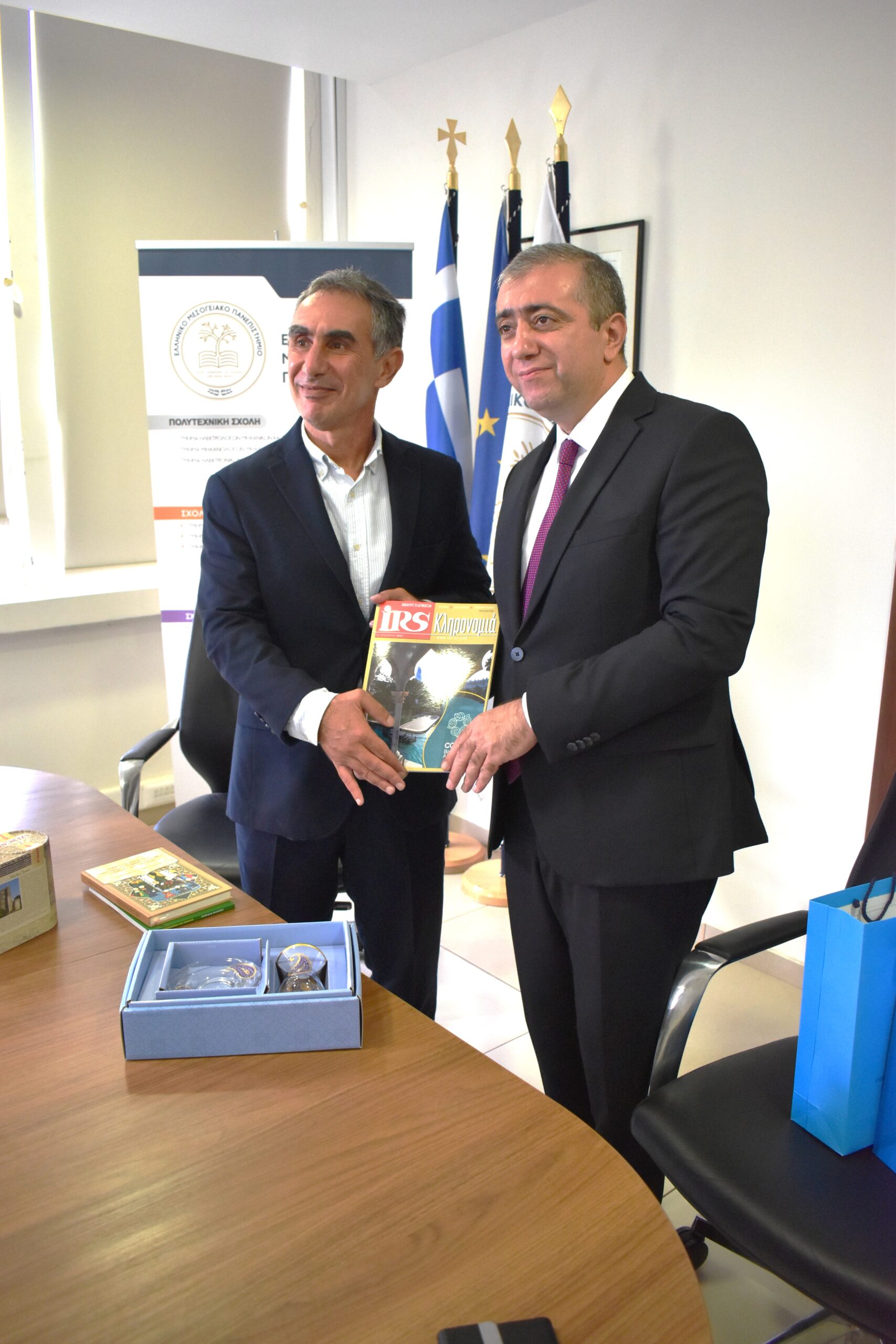Τον κ. Mammadov υποδέχτηκαν ο Πρύτανης του ΕΛΜΕΠΑ, Καθ. Νίκος Κατσαράκης, ο Αντιπρύτανης Ακαδημαϊκών Υποθέσεων και Δια Βίου Μάθησης, Καθ. Φώτιος Μαυροματάκης καθώς και η Εκτελεστική Διευθύντρια Δρ. Βανέσσα Σημαντηράκη. Κατά τη διάρκεια της συνάντησης συζητήθηκαν οι δυνατότητες ενίσχυσης της ακαδημαϊκής και ερευνητικής συνεργασίας μεταξύ του ΕΛΜΕΠΑ και Πανεπιστημιακών Ιδρυμάτων του Αζερμπαϊτζάν. Ιδιαίτερη έμφαση δόθηκε στους τομείς της παραγωγής και αποθήκευσης ενέργειας, των πράσινων τεχνολογιών και της κυκλικής οικονομίας, καθώς και στη δυνατότητα ανάπτυξης κοινών δράσεων στους τομείς του τουρισμού, της εκπαίδευσης και του πολιτισμού, με αφετηρία τη στρατηγική σημασία της Κρήτης στην ευρύτερη περιοχή της Ανατολικής Μεσογείου.