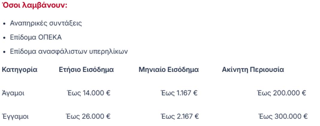 Όπως γράφουν tanea.gr, το εφάπαξ επίδομα των 250 ευρώ θα καταβληθεί έως τις 15-20 Νοεμβρίου σε δικαιούχους που πληρούν συγκεκριμένα εισοδηματικά και περιουσιακά κριτήρια.