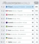 Στην πρώτη θέση βρίσκεται η Φινλανδία με σημαντική διαφορά, συγκεντρώνοντας 28% πιθανότητα νίκης. Ακολουθούν η Γαλλία και η Δανία, και οι δύο με 12%, διατηρώντας σαφή προβάδισμα έναντι των υπολοίπων χωρών.