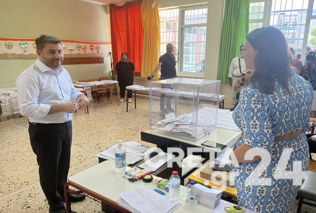 Στο Ηράκλειο και συγκεκριμένα στο 13ο Δημοτικό Σχολείο ψήφισε ο πρόεδρος του ΠΑΣΟΚ, Νίκος Ανδρουλάκης.