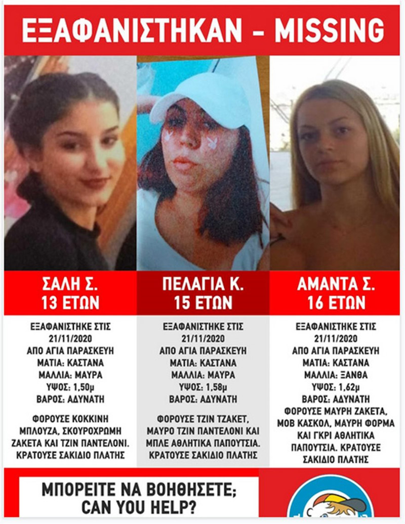 «Το Χαμόγελο» ενημερώθηκε χθες (26/11/2020) για την εξαφάνιση των ανηλίκων και άμεσα προέβη στη δημοσιοποίηση των στοιχείων τους κατόπιν Εισαγγελικής εντολής. Οι ανήλικες έφυγαν από τη δομή φιλοξενίας και έχουν πραγματοποιήσει προηγούμενες φυγές στο εγγύς χρονικό διάστημα για τις οποίες και πάλι είχε γίνει δημοσιοποίηση των στοιχειών τους για τον εντοπισμό τους.