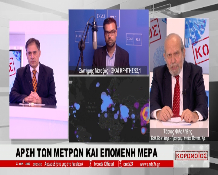 Για την επιστροφή στην κανονικότητα και την σταδιακή άρση των περιοριστικών μέτρων και πως αυτή θα γίνει επιτυχώς, προκειμένου να μην υπάρξει αύξηση των κρουσμάτων κορωνοϊού στη χώρα μας, μίλησε στον Περιφερειακό Τηλεοπτικό Σταθμό CRETA ο Καθηγητής Κοινωνικής Ιατρικής – Προγραμματισμού Υγείας στο Πανεπιστήμιο Κρήτης Τάσος Φιλαλήθης.