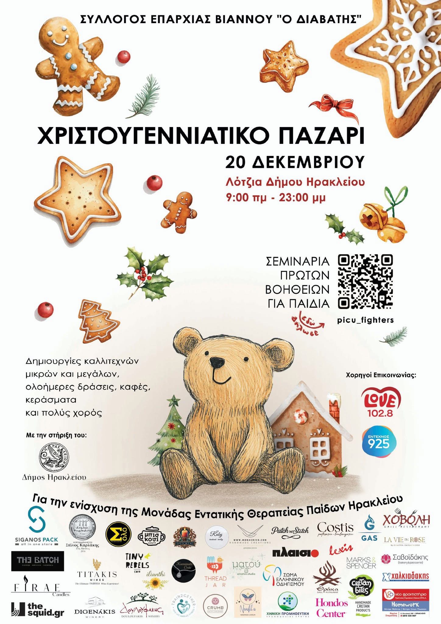 Για δεύτερη συνεχή χρονιά, ο Σύλλογος Επαρχίας Βιάννου «Ο ΔΙΑΒΑΤΗΣ» διοργανώνει φιλανθρωπικό Bazaar, με σκοπό την ενίσχυση της Μονάδας Εντατικής Θεραπείας Παίδων του Πανεπιστημιακού Γενικού Νοσοκομείου Ηρακλείου (Μ.Ε.Θ. Παίδων ΠΑ.Γ.Ν.Η.).