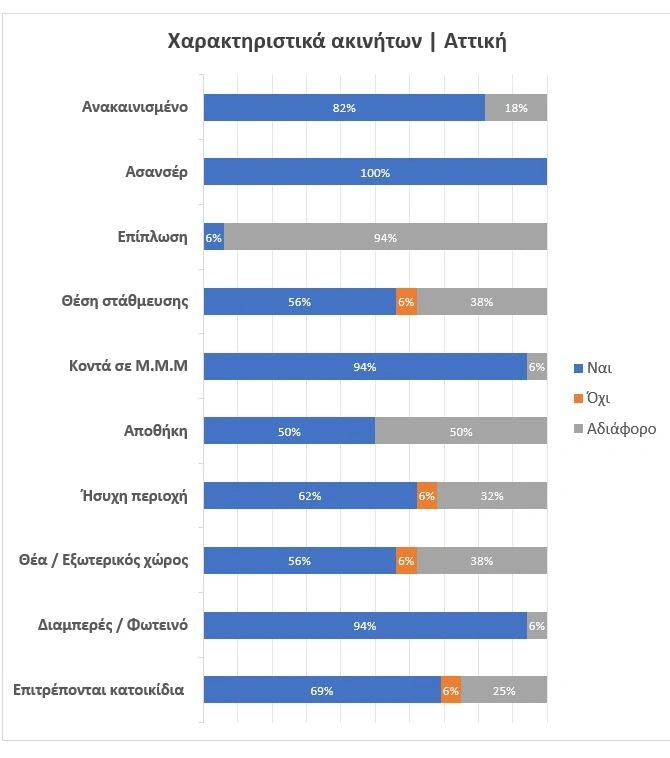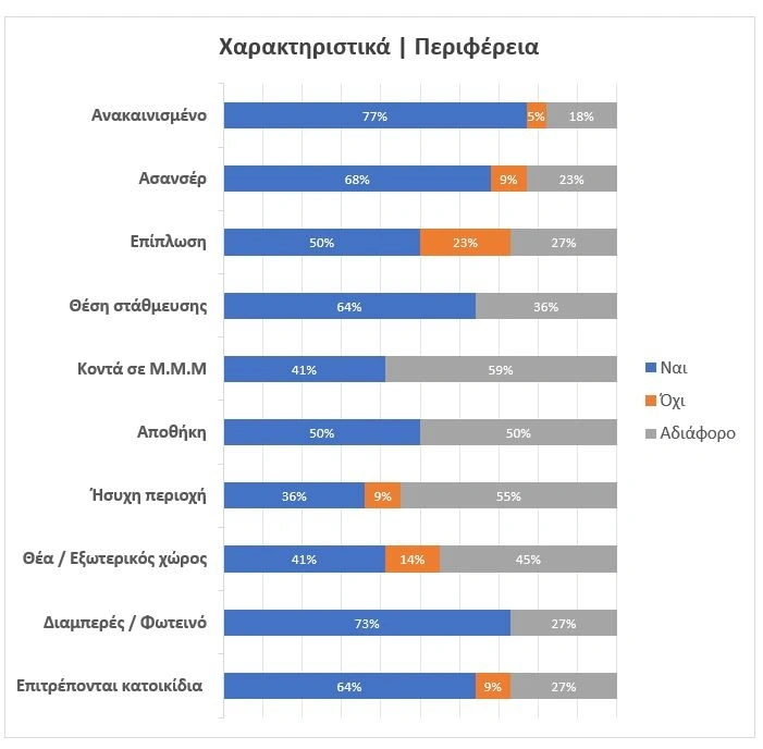 Ενδιαφέρον στοιχείο αποτελεί, επίσης, το γεγονός ότι οι ενδιαφερόμενοι ενοικιαστές, σε πανελλαδικό επίπεδο, αναζητούν κατοικίες φωτεινές και διαμπερείς, να είναι κοντά σε στάσεις Μέσων Μαζικής Μεταφοράς (ιδιαίτερα στα μεγάλα αστικά κέντρα), να διαθέτουν θέσεις στάθμευσης, αλλά και να διευκολύνεται η φιλοξενία των κατοικιδίων τους.