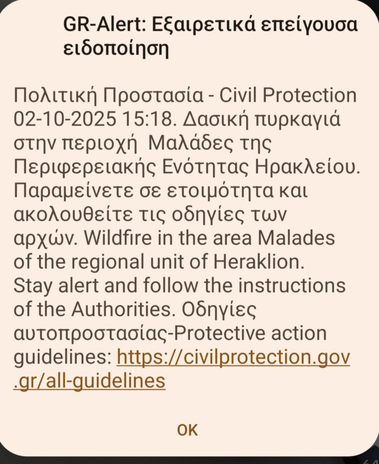 Η Πολιτική Προστασία καλεί τους πολίτες να παραμείνουν σε ετοιμότητα και να ακολουθούν τις οδηγίες των αρχών.