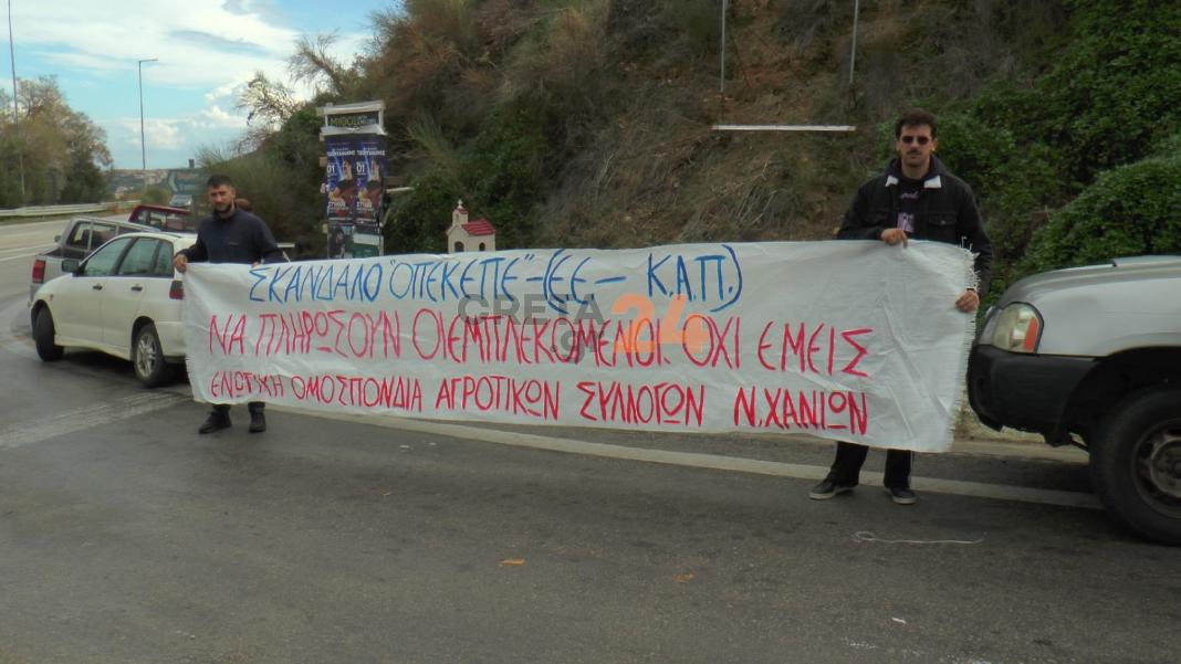 Από τις 12 το μεσημέρι της Κυριακής 7/12 ξεκίνησε η συγκέντρωση αγροτών στον κόμβο στα Μεγάλα Χωράφια, στον Βόρειο Οδικό Άξονα Κρήτης, που έχει διοργανώσει η Ενωτική Ομοσπονδία Αγροτικών Συλλόγων νομού Χανίων.
