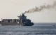 Μία εικόνα δείχνει μαύρο καπνό να προέρχεται από ένα μεγάλο πλοίο που μεταφέρει εμπορευματοκιβώτια, ενώ μια άλλη φαίνεται να δείχνει το ίδιο πλοίο με ένα αμερικανικό στρατιωτικό πλοίο σε κοντινή απόσταση.