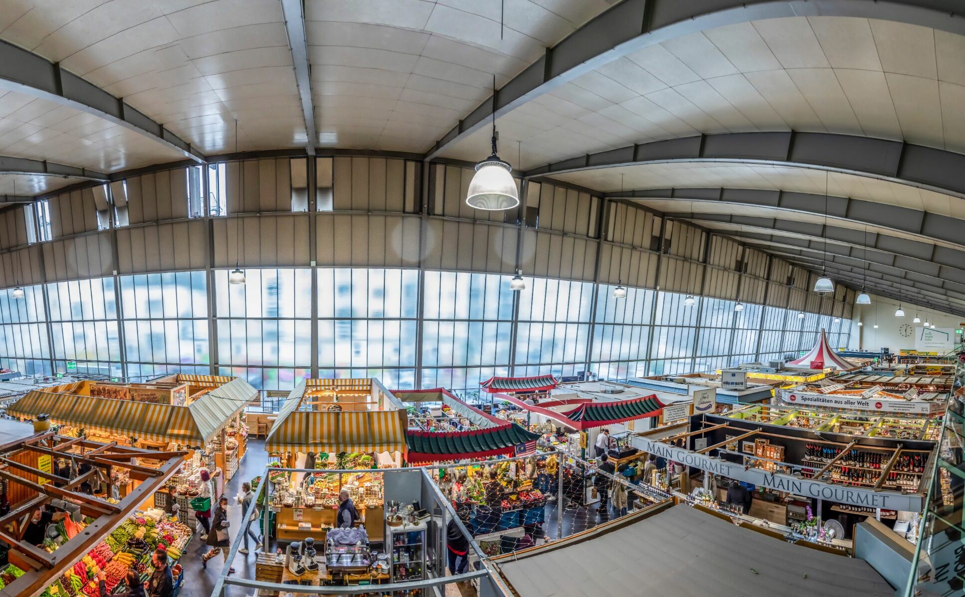 Βόρεια και λίγο ανατολικά της πλατείας του Δημαρχείου βρίσκεται και η Κεντρική Αγορά τροφίμων, η Kleinmarkthalle του 1954. Εδώ, θα βρείτε από ζαρζαβατικά και φρούτα μέχρι αλλαντικά, τυριά, ψωμάκια και γλυκά. Αξίζει να πάτε και μέχρι το Steigenberger Icon Frankfurter Hof ένα εμβληματικό ξενοδοχείο που είναι το πρώτο στη Γερμανία που είχε ηλεκτρικό ρεύμα και το πρώτο που είχε τηλέφωνο για κλήσεις εξωτερικού στη Φρανκφούρτη. Από εδώ έχουν περάσει η αυτοκράτειρα Βικτωρία, ο Φρανσουά Μιτεράν, ο βασιλιάς Χουάν Κάρλος, ο Έλτον Τζον, οι Rolling Stones κ.ά. ενώ σήμερα φιλοξενεί πολιτικούς ξένων χωρών όταν επισκέπτονται επίσημα την Φρανκφούρτη, ευρωβουλευτές κ.α. Το ξενοδοχείο που άνοιξε το 1876 έχει πανέμορφη αρχιτεκτονική και είναι το τέλειο μέρος για να πιείτε έναν καφέ σε ένα ιδιαίτερα ατμοσφαιρικό περιβάλλον.
