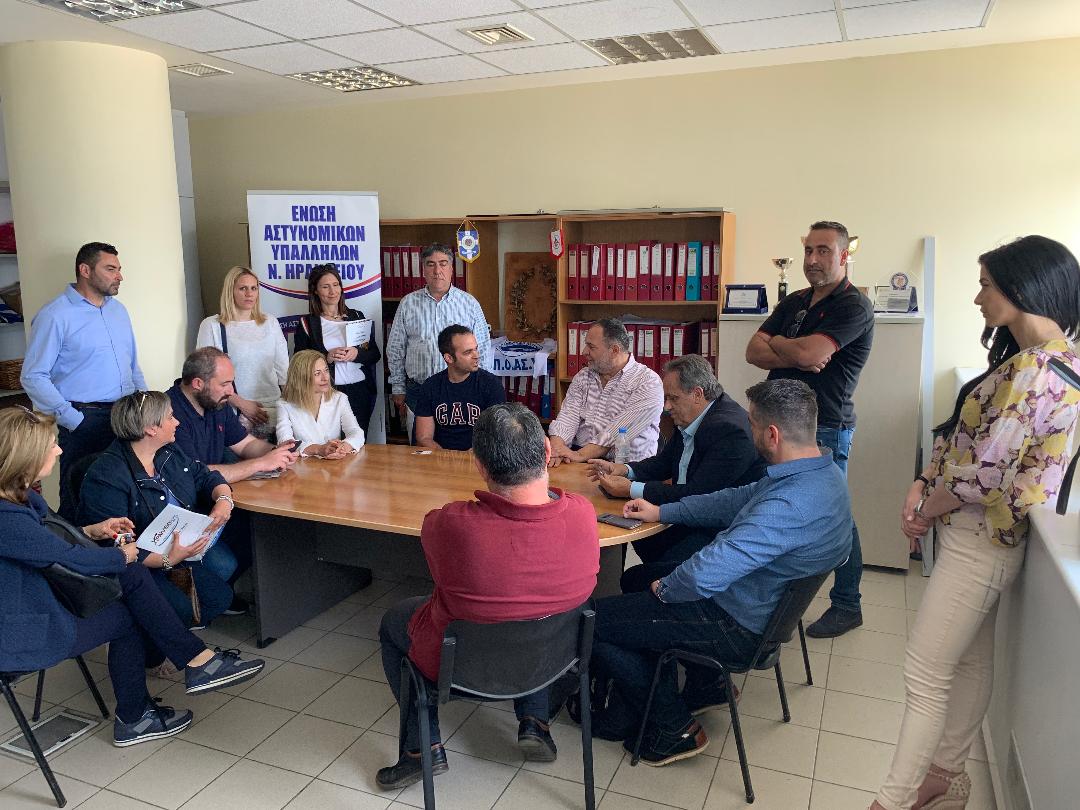 Συνάντηση με τον Αστυνομικό Διευθυντή κ. Νίκο Σπυριδάκη, τους Υποδιευθυντές, τους Διοικητές όλων των Τμημάτων, τον πρόεδρο κ. Γιωργο Πικράκη και τα μέλη του Δ.Σ. της Ένωσης Αστυνομικών Υπαλλήλων ν. Ηρακλείου, καθώς και το προσωπικό που υπηρετεί στο Αστυνομικό Μέγαρο, είχε ο Γιάννης Κουράκης.
