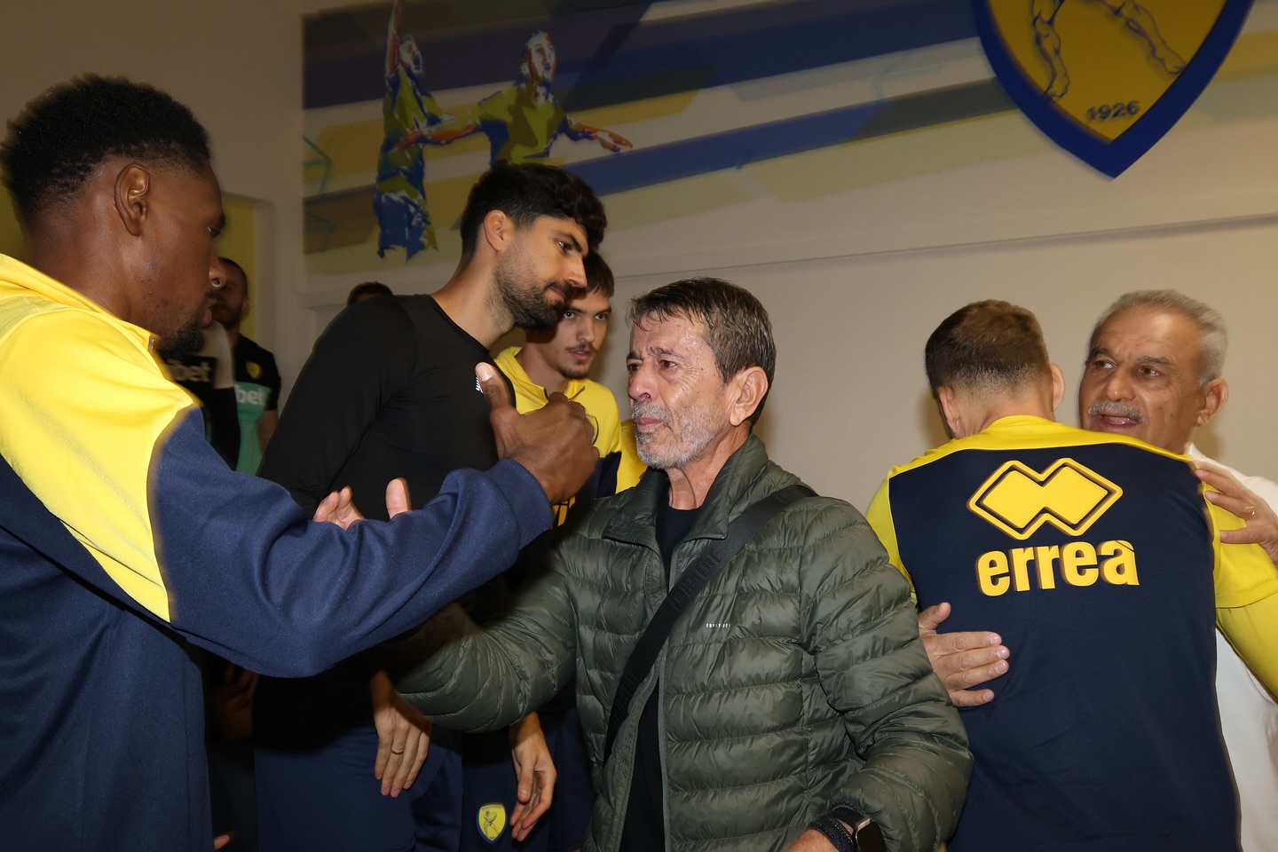 Η συγκίνηση ήταν εμφανής στο πρόσωπο του έμπειρου τεχνικού, όσο και σε αυτά των ποδοσφαιριστών του Παναιτωλικού.