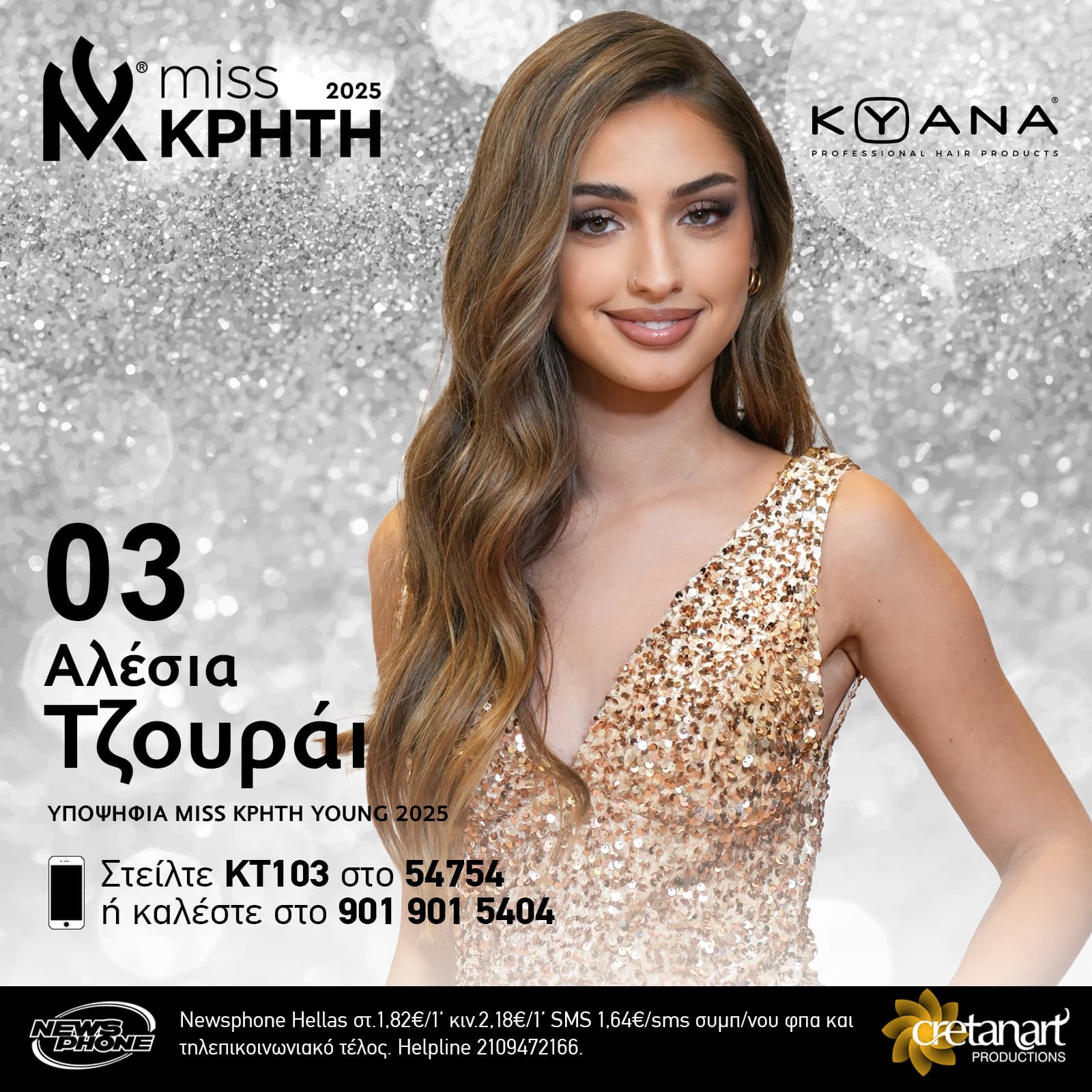 Τον τίτλο της Miss Κρήτη Young 2025 διεκδικούν οι: 1. Εμμανουέλα Ζγκούρι (17 ετών, ύψος 1.73, από Ηράκλειο), 2. Μαρία Ρεμιδιανάκη (17 ετών, ύψος 1.67, από Ηράκλειο), 3. Αλέσια Τζουράι (15 ετών, ύψος 1.70, από Ηράκλειο), 4. Λίλια Μπαντρ (16 ετών, ύψος 1.68, από Ηράκλειο). Τον τίτλο της Miss Κρήτη 2025 διεκδικούν οι: 5. Φωτεινή Νεοχωρίτη (22 ετών, ύψος 1.70, από Ηράκλειο), 6. Κατερίνα Πούλακα (21 ετών, ύψος 1.72, από Χανιά), 7. Μαριλένα Ντισπυράκη (24 ετών, ύψος 1.78, από Σητεία), 8. Ελίσσια Κρασουδάκη (23 ετών, ύψος 1.81, από Χανιά), 09. Πελαγία Γαργανουράκη (23 ετών, ύψος 1.70, από Ηράκλειο), 10. Τερέζα Χαμπαριάν (26 ετών, ύψος 1.72, από Ηράκλειο), 11. Μαρία Σταματάκη (18 ετών, ύψος 1.72, από Ηράκλειο).