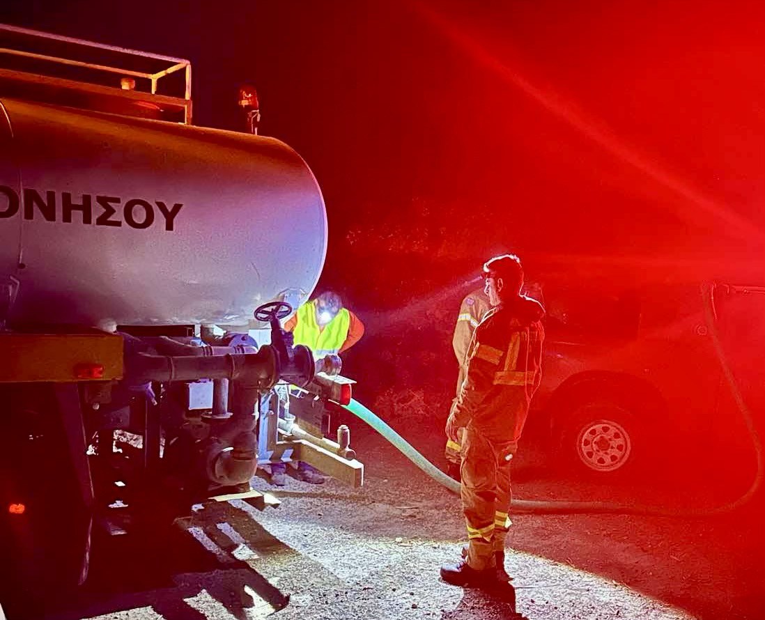 Η φωτιά ξέσπασε το βράδυ της Τετάρτης, κάτω από αδιευκρίνιστες συνθήκες και στο σημείο επιχείρησαν συνολικά 7 πυροσβεστικά οχήματα με 14 άνδρες και μια ομάδα της 3ης ΕΜΟΔΕ.