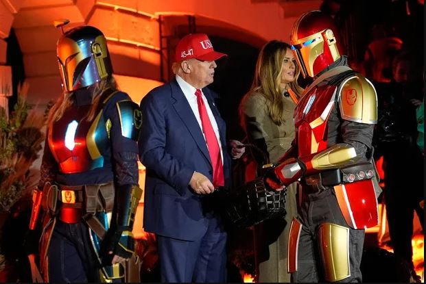 Ο Πρόεδρος Τραμπ και η πρώτη κυρία Μελάνια Τραμπ φιλοξένησαν αθλητές-σταρ, πριγκίπισσες, δεινόσαυρους και τουλάχιστον έναν μιμητή του Τραμπ στην ετήσια εκδήλωση του Λευκού Οίκου για το Halloween την Πέμπτη.
