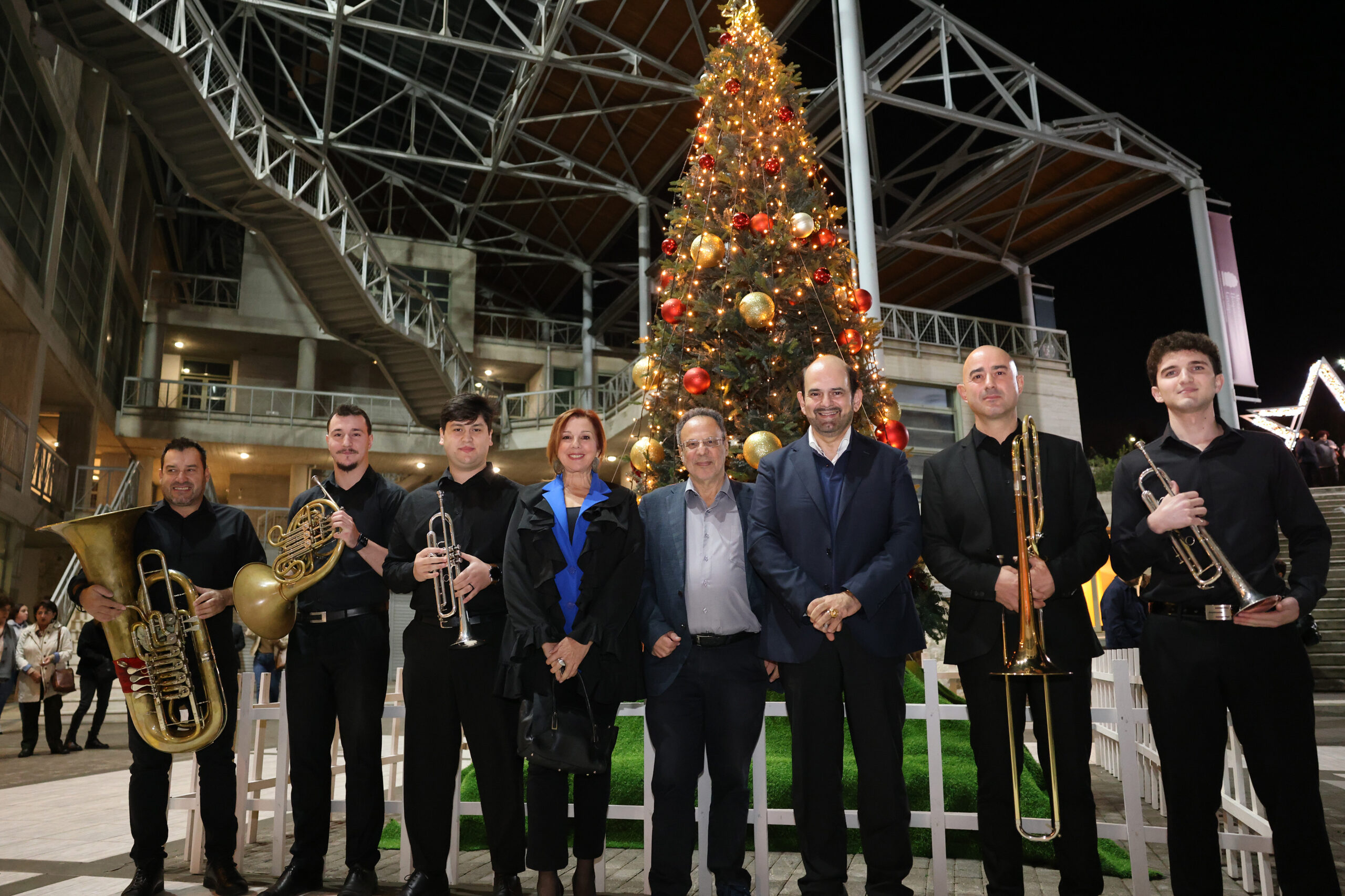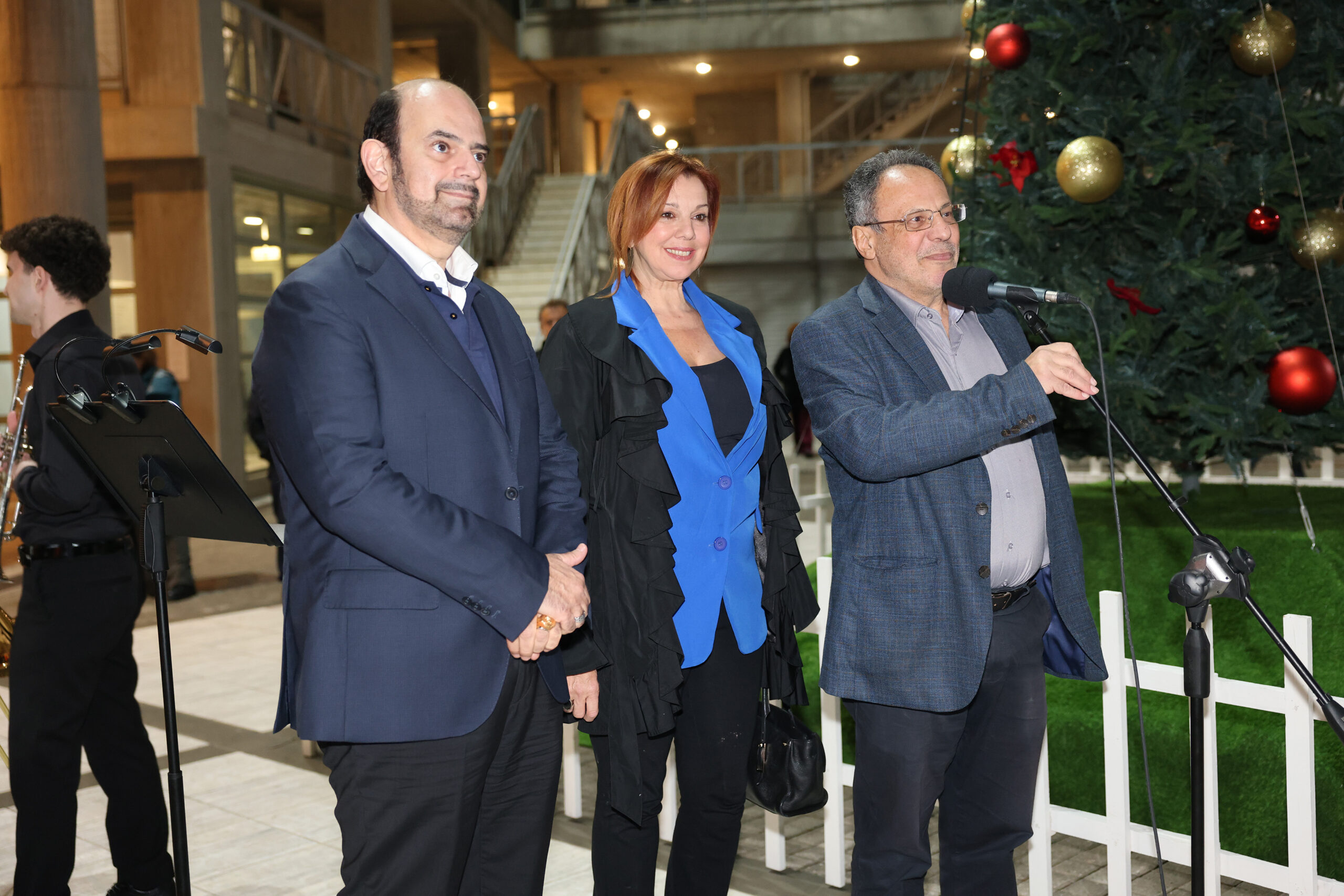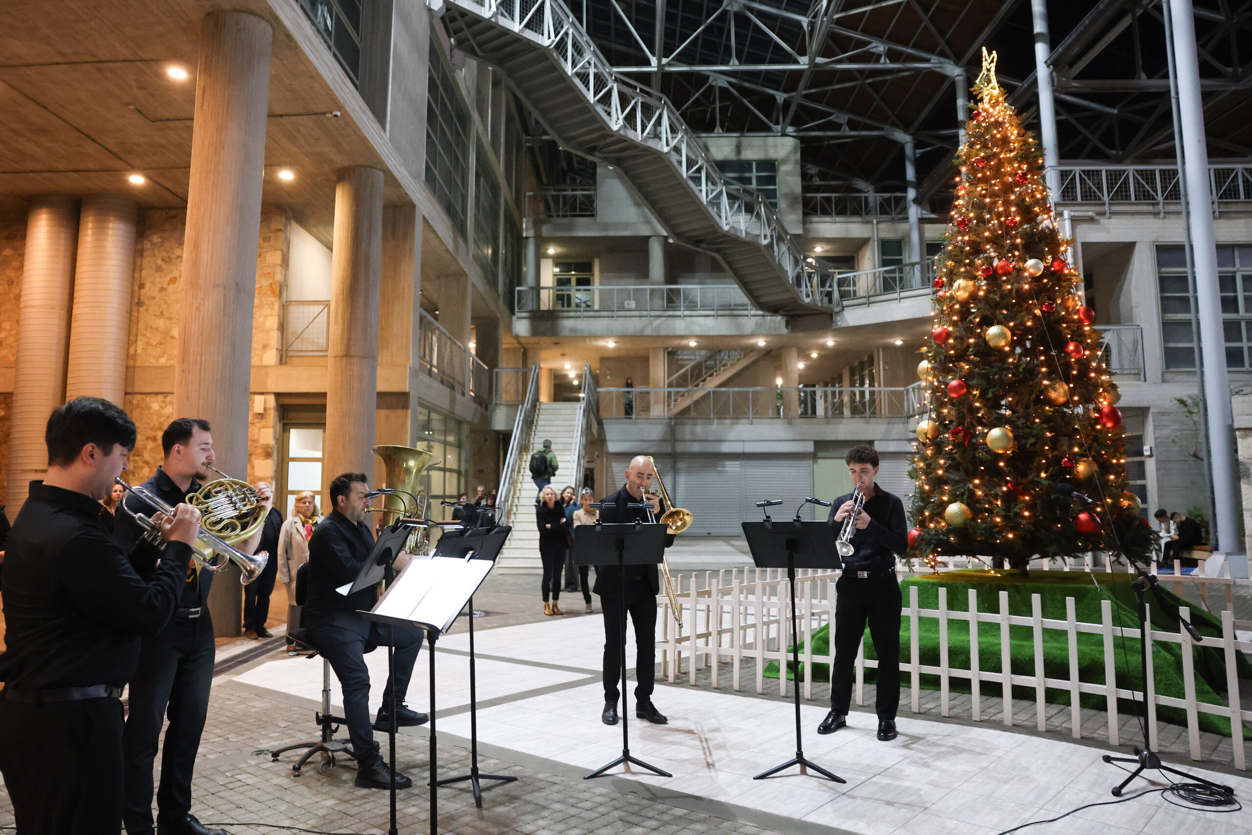 Ο Πρόεδρος της ΔΕΠΑΝΑΛ Α.Ε. Κώστας Βαρβεράκης και η Αντιπρόεδρος κ. Μάρα Παναγιωτάκη άναψαν τα φώτα του Χριστουγεννιάτικου δέντρου που έχει στηθεί στο αίθριο του ΠΣΚΗ, υπό τις υπέροχες χριστουγεννιάτικες μελωδίες που προσέφερε το Κουιντέτο Χάλκινων Πνευστών της Φιλαρμόνια Ορχήστρας Αθηνών.