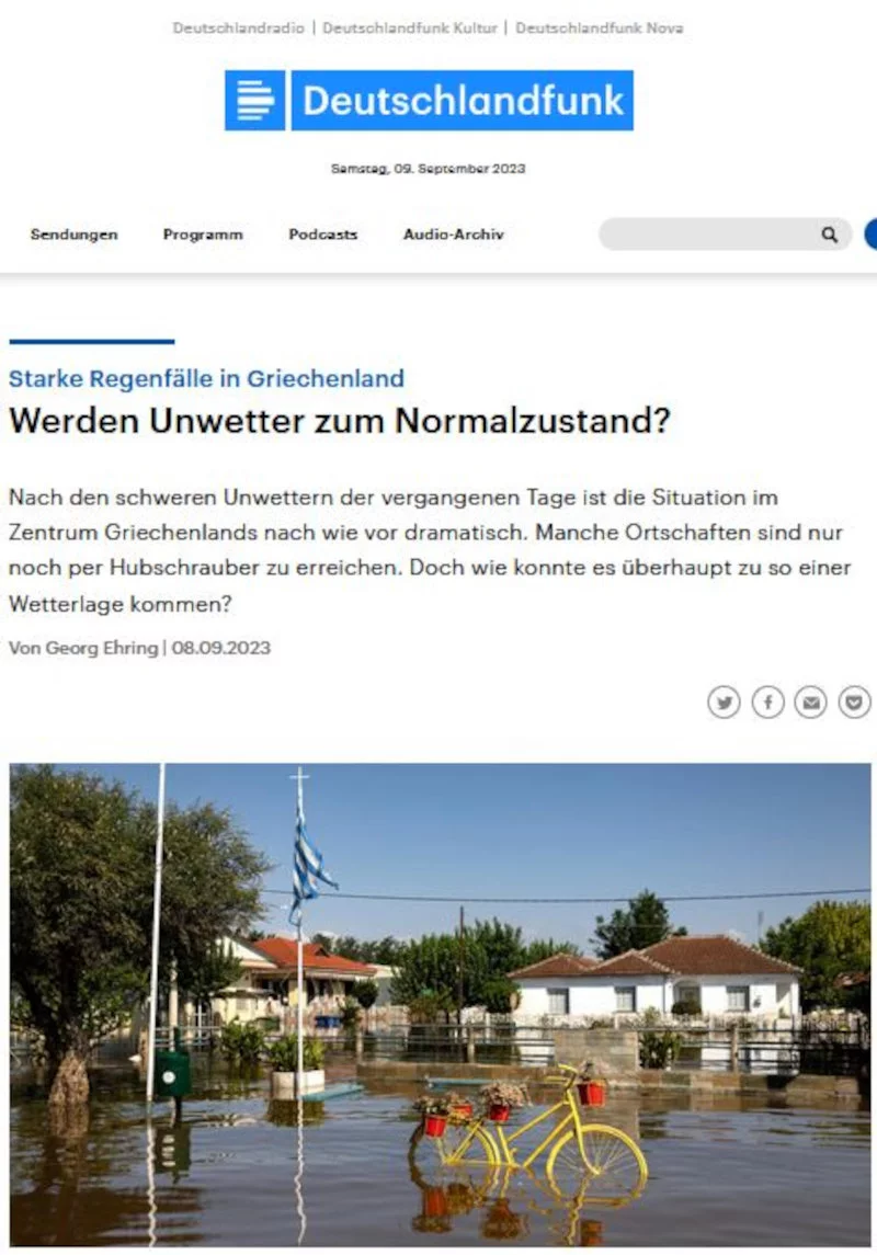 «Σφοδρές βροχοπτώσεις στην Ελλάδα – Θα είναι οι κακοκαιρίες η νέα κανονικότητα;», διερωτάται το Deutschlandfunk.