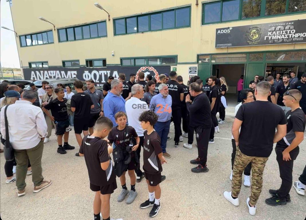 Oι αθλητές του ΟΦΗ, φώναξαν δυνατά “ΟΦΗ” και το κλειστό σείστηκε απο την δύναμη της φωνής των παιδιών.