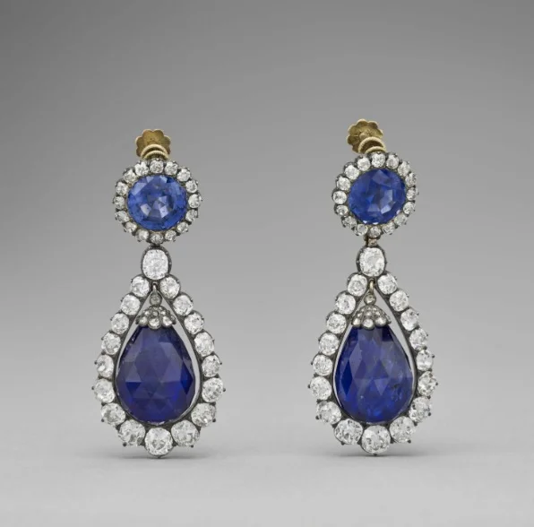 -Σκουλαρίκια, από το σετ ζαφειριών της Βασίλισσας Μαρί-Αμαλίας και της Βασίλισσας Ορτάνς