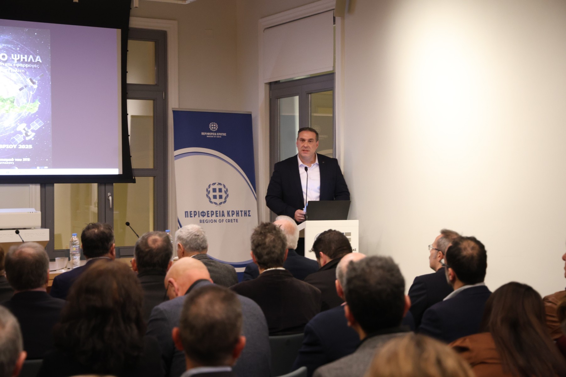 Συντονίζοντας την εκδήλωση ο Αντιπεριφερειάρχης Διασύνδεσης με Ερευνητικά και Ακαδημαϊκά Ιδρύματα Γιώργος Ματαλλιωτάκης αναφέρθηκε στις υπηρεσίες γεωχωρικών δεδομένων που ανέπτυξε και χρησιμοποιεί ήδη η Περιφέρεια Κρήτης, στην ισχυρή πολιτική βούληση για επένδυση σε νέες τεχνολογίες και στην στενή συνεργασία που διατηρεί η Περιφέρεια με τα πανεπιστήμια και τα ερευνητικά κέντρα του νησιού, τονίζοντας ότι το ισχυρό πλεονέκτημα της Κρήτης είναι το επιστημονικό δυναμικό που διαθέτει.