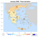 Ο παρακάτω χάρτης δείχνει τις αποκλίσεις της μέσης μέγιστης θερμοκρασίας για τον Ιανουάριο του 2026, ανά γεωγραφικό διαμέρισμα.