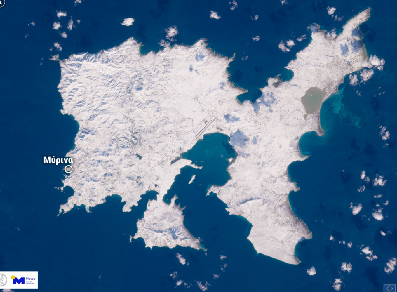Η παρακάτω δορυφορική εικόνα, που ελήφθη από τον ευρωπαϊκό δορυφόρο Sentinel-2 το μεσημέρι της Πέμπτης 1 Ιανουαρίου 2026, αποτυπώνει την εντυπωσιακή εικόνα της πάλλευκης Λήμνου, η οποία θυμίζει κάτι από τον… Αρκτικό Κύκλο: