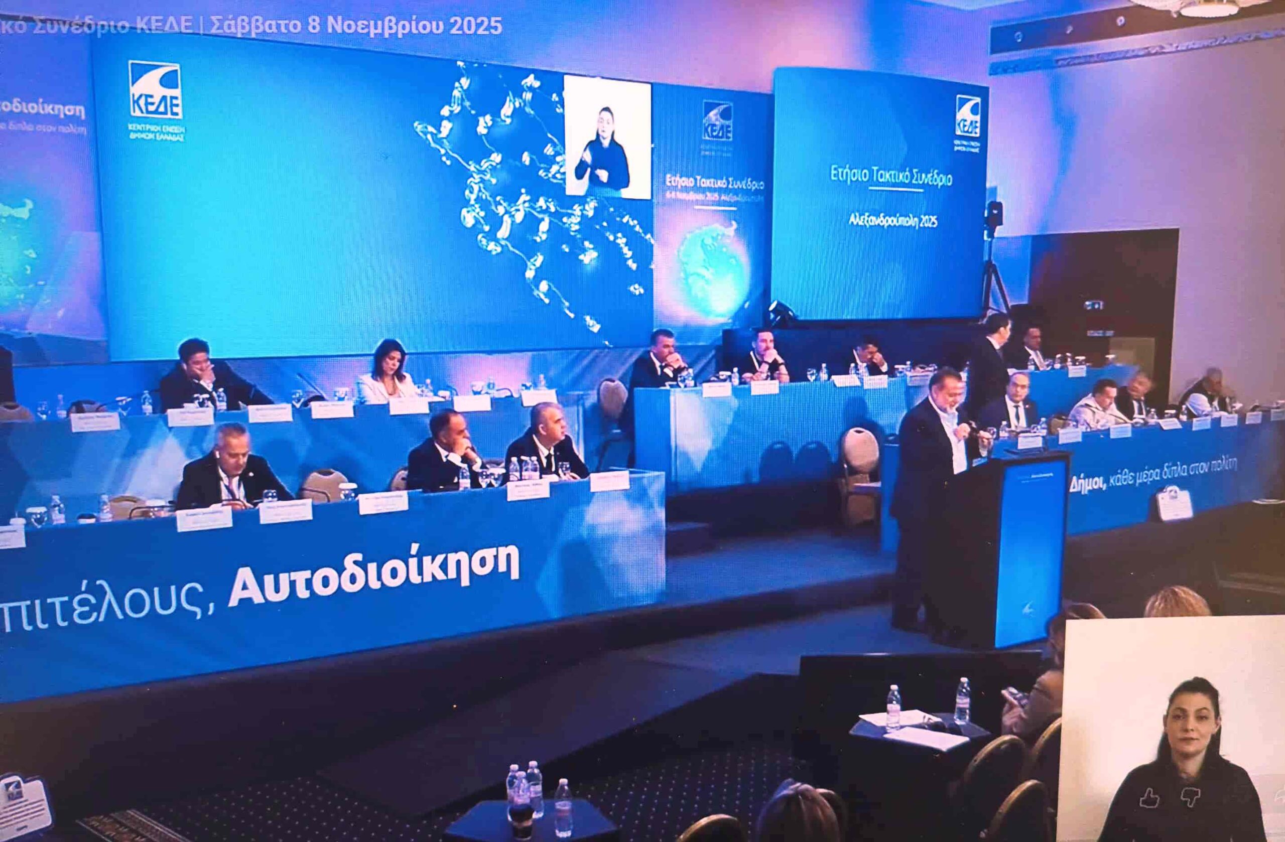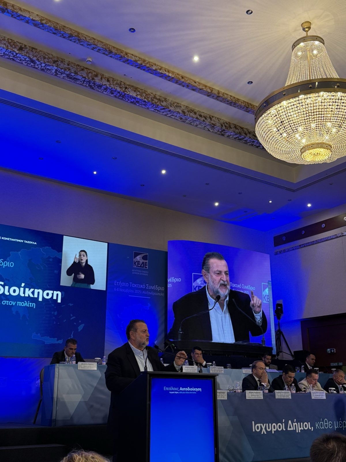 «Η Τοπική Αυτοδιοίκηση βιώνει μια πρωτοφανή κρίση οικονομικής ασφυξίας και συγκεντρωτισμού. Δεν μπορούμε να λειτουργούμε άλλο με δεμένα χέρια. Χρειαζόμαστε Δήμους με φωνή, δύναμη και συμμετοχή στο σχεδιασμό και τις αποφάσεις, με ουσιαστικό ρόλο στην ανάπτυξη των τοπικών κοινωνιών. Η ενίσχυση της Αυτοδιοίκησης είναι πλέον ζήτημα επιβίωσης και δικαιοσύνης. Απαιτείται η πλήρης εφαρμογή του Ν. 3852/2010 και η άμεση απόδοση στους Δήμους των πόρων που αντιστοιχούν στις αρμοδιότητές τους. Σήμερα οι Δήμοι λειτουργούν με μειωμένο προσωπικό, συρρικνωμένους προϋπολογισμούς και θεσμική επισφάλεια. Το κράτος οφείλει να τηρεί τις υποχρεώσεις του απέναντι στην Αυτοδιοίκηση, οικονομικά, θεσμικά και το κυριότερο, να μην οπισθοδρομεί. Χρειάζεται, συνολικά, αλλαγή του διοικητικού μοντέλου και μία γενναία ανακατανομή εξουσίας (αρμοδιοτήτων, αποφάσεων, πόρων), ώστε οι Δήμοι να μη χρειάζεται συνεχώς να παλεύουν με εμπόδια που μας κρατούν στάσιμους. Αν δεν αντιμετωπιστεί άμεσα και διαφορετικά η σημερινή κατάσταση, η Αυτοδιοίκηση θα εισέλθει σε μια μοιραία περίοδο, όμως οι διεργασίες του Συνεδρίου και τα μηνύματα του, μας δίνουν το δικαίωμα να αισιοδοξούμε, αρκεί το κεντρικό κράτος και ειδικότερα η Κυβέρνηση, να ακούσει αυτά τα μηνύματα και να τα μεταφράσει σε αναγκαίες πολιτικές», ανέφερε χαρακτηριστικά ο Δήμαρχος.