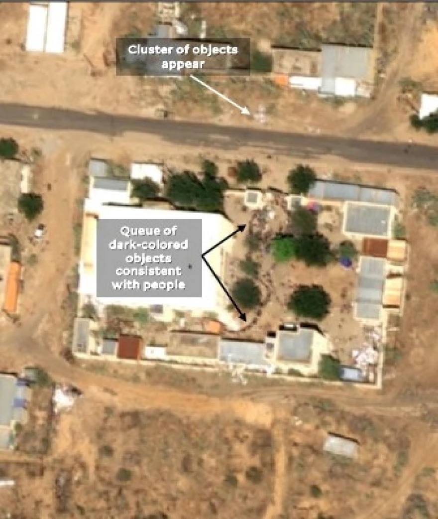 Η ανάλυση των δορυφορικών εικόνων, όπως θα δείτε στην παρακάτω φωτογραφία, είναι από νοσοκομείο σε συνοικία του Ελ Φάσερ και δείχνει τουλάχιστον τέσσερις νέες συστάδες από πτώματα, που δεν ήταν ορατές σε εικόνες των προηγούμενων ημερών. Ορισμένα αντικείμενα έχουν μέγεθος περίπου 1,1 με 1,9 μέτρα.