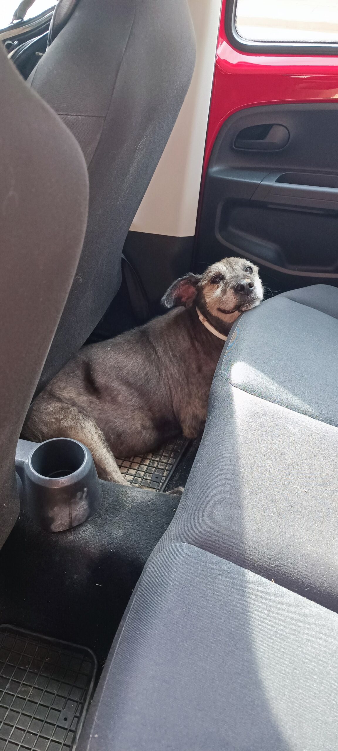 Μία ηλικιωμένη σκυλίτσα βρέθηκε να περιπλανιέται στον ΒΟΑΚ, στο ρεύμα προς Άγιο Νικόλαο. Μία διερχόμενη οδηγός σταμάτησε και την οδήγησε εκτός του εθνικού δρόμου προκειμένου να μην τραυματιστεί από διερχόμενα αυτοκίνητα.