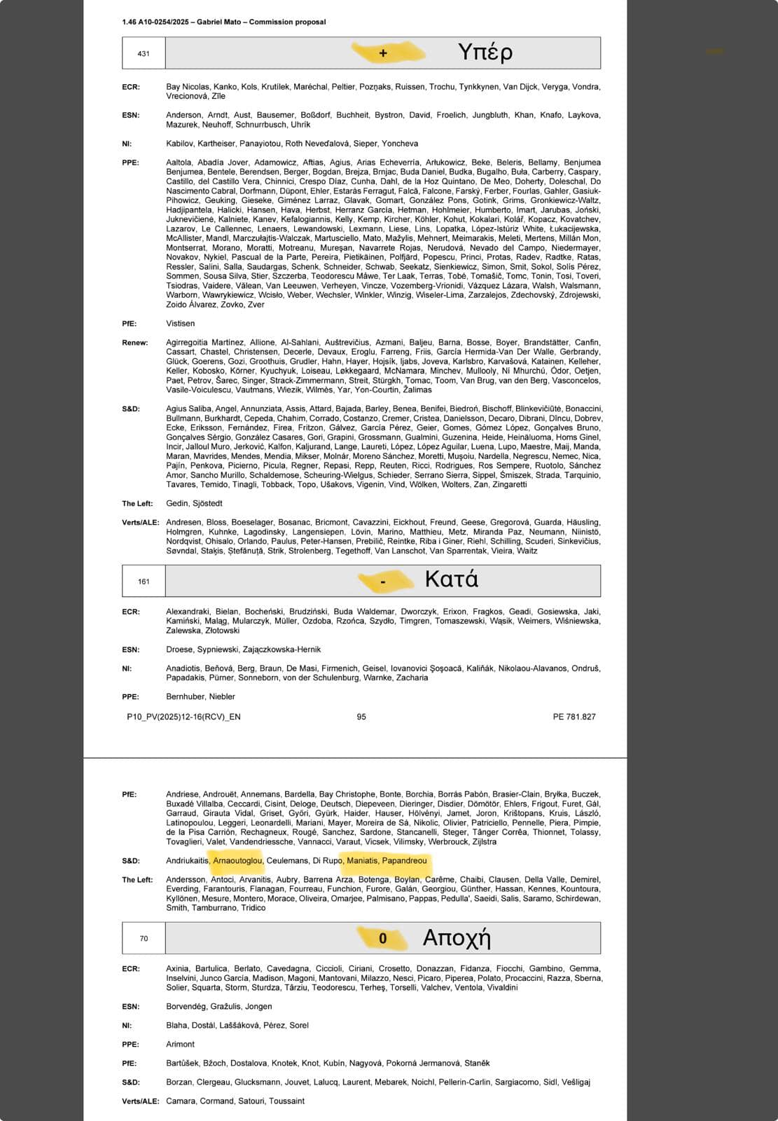 Ξεκαθαρίζουμε: και οι τρεις ευρωβουλευτές του ΠΑΣΟΚ ψήφισαν ΚΑΤΑ (-)!!!!» ανέφερε ο κ.Μανιάτης και έδωσε την επίσημη σελίδα ψηφοφοριών του ευρωκοινοβουλίου, που επισυνάπτεται, τα λέει όλα: ΥΠΕΡ (+),ΚΑΤΑ (-), ΑΠΟΧΗ (0).