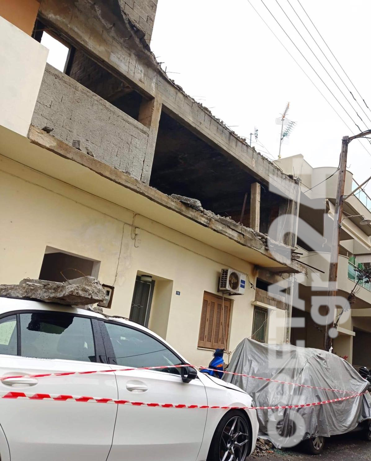 Το βράδυ του Σαββάτου στην περιοχή της Νέας Αλικαρνασσού μπαλκόνι υποχώρησε λόγω της έντονης βροχόπτωσης και «προσγειώθηκε» σε δύο σταθμευμένα αυτοκίνητα.