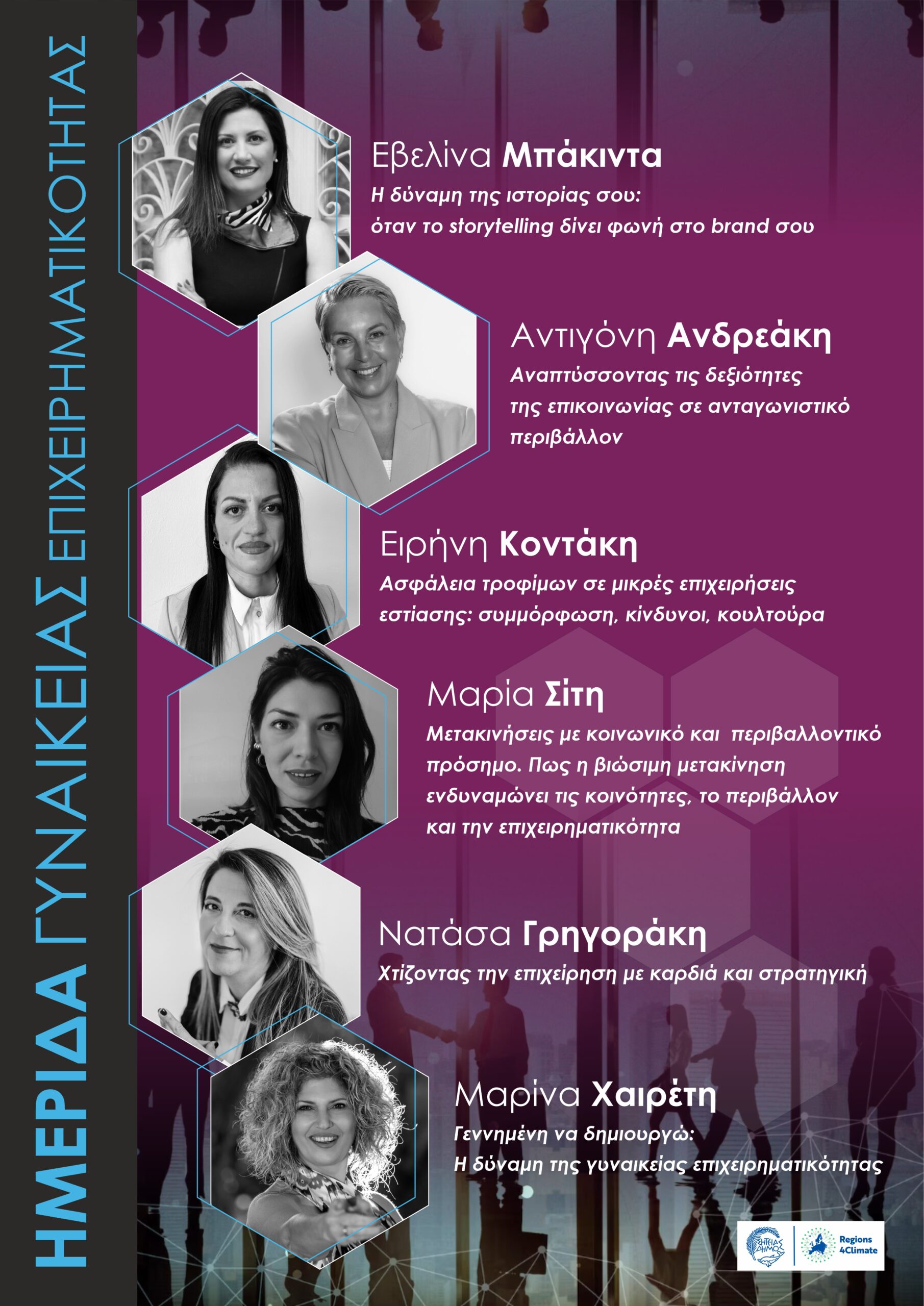 Ο Δήμος Σητείας, στο πλαίσιο του Ευρωπαϊκού Προγράμματος Horizon – Regions4Climate, διοργανώνει την Ημερίδα Γυναικείας Επιχειρηματικότητας το Σάββατο 22 Νοεμβρίου 2025 και ώρα 17:30, στο Πολύκεντρο του Δήμου Σητείας.