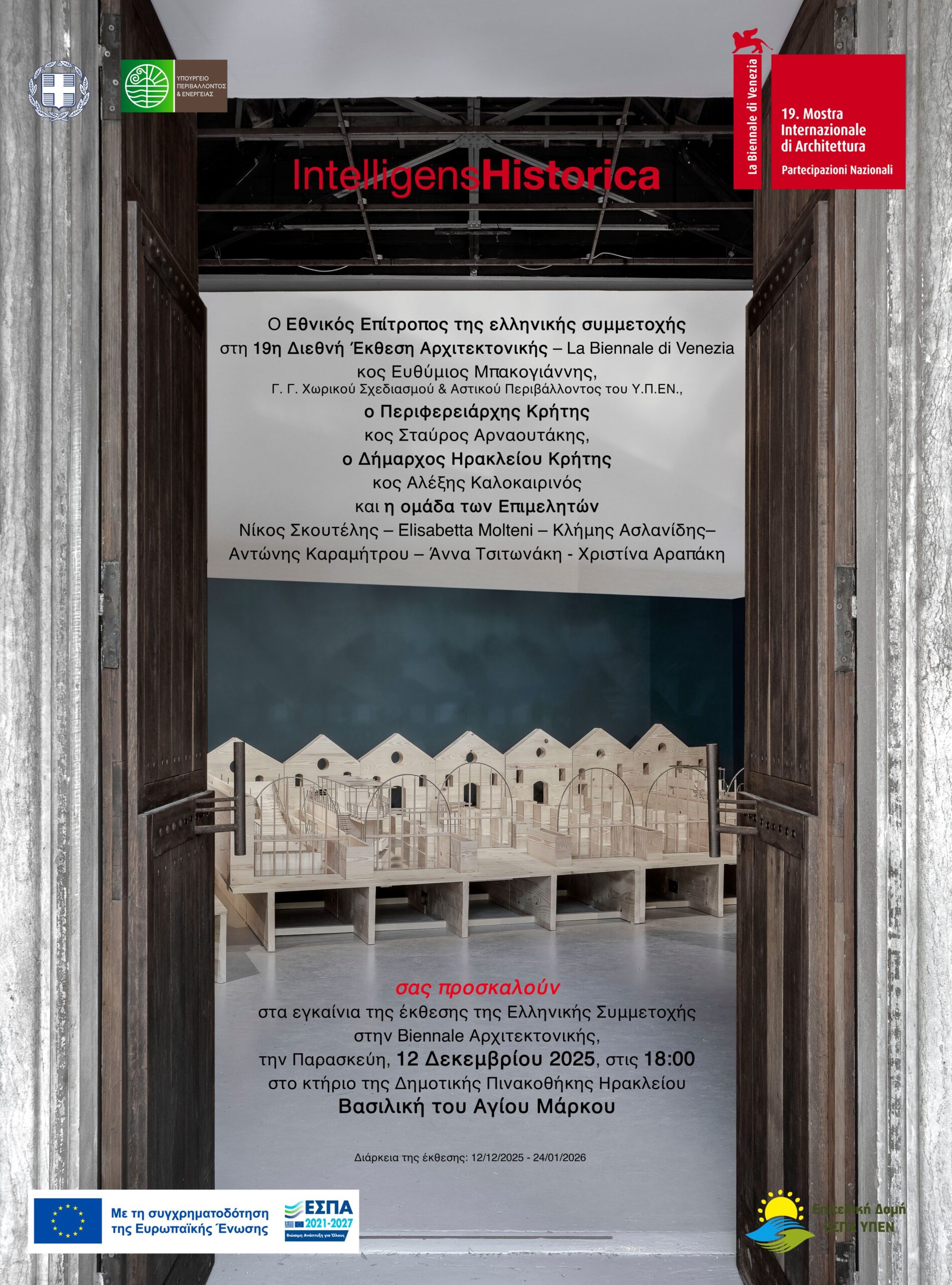 Στην Δημοτική Πινακοθήκη Ηρακλείου, στην βασιλική του Αγίου Μάρκου από τις 12 Δεκεμβρίου 2025 έως τις 23 Ιανουαρίου 2026 παρουσιάζεται η έκθεση αρχιτεκτονικής με τίτλο IntelligensHistorica. Πρόκειται για τις προτάσεις του Πολυτεχνείου Κρήτης για την αποκατάσταση και επανάχρηση των ενετικών νεωρίων στο Ηράκλειο και στα Χανιά, όπως παρουσιάστηκαν στο ελληνικό περίπτερο ως εθνική εκπροσώπηση στην 19η Διεθνή Έκθεση Αρχιτεκτονικής – La Biennale di Venezia, με θέμα: Intelligens.Natural.Artificial.Collective με επιμελητή τον Carlo Ratti, που έλαβε χώρα στους κήπους της Biennale και στο νεώριο της Βενετίας από 10 Μαΐου έως 23 Νοεμβρίου 2025.