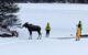 Η άλκη δεν κολύμπησε προς τον παχύ πάγο, οπότε προσπάθησαν να την οδηγήσουν προς το κανάλι που είχαν ανοίξει. Η ίδια όμως δεν πτοήθηκε από τους υπαλλήλους ή τα μεγάλα μεταλλικά μπαστούνια τους αλλά από τα έλκηθρά τους.