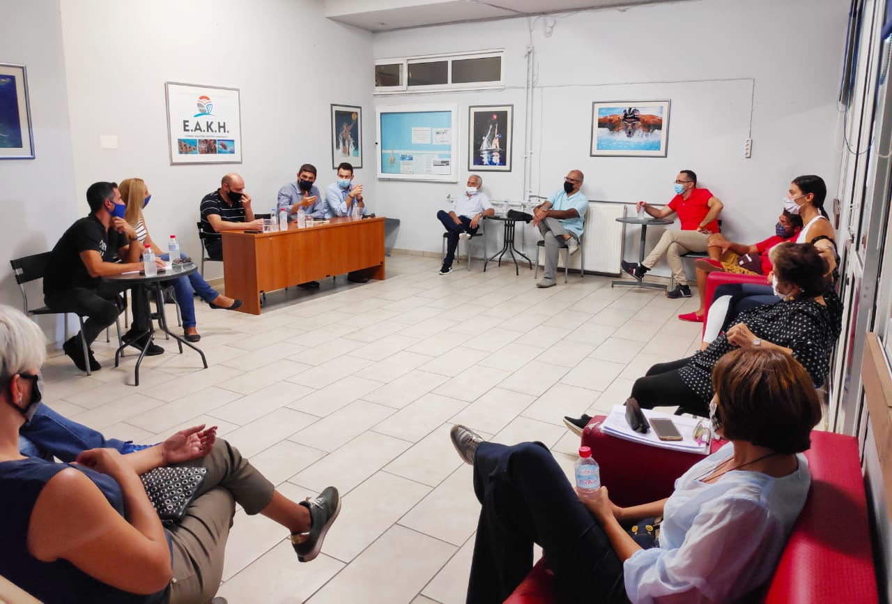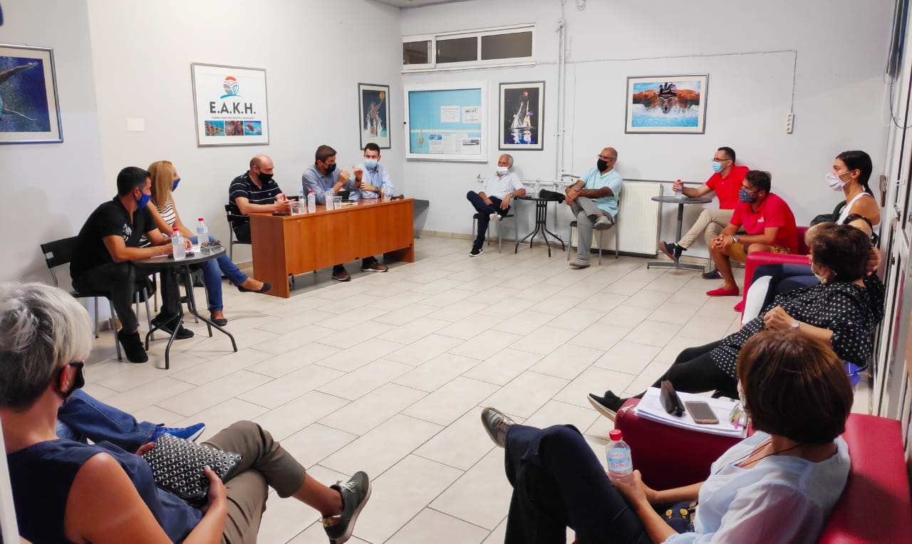 Με πρωτοβουλία της Διοικούσας Επιτροπής του ΕΑΚ Ηρακλείου, παρουσία του Υφυπουργού Αθλητισμού, Λευτέρη Αυγενάκη, του Αντιδημάρχου Ηρακλείου, αρμοδίου για θέματα αθλητισμού, Κώστα Βαρδαβά και μελών της Περιφερειακής Επιτροπής Κολύμβησης Υδατοσφαίρισης Κρήτης και Ρόδου, πραγματοποιήθηκε συνάντηση το απόγευμα της Παρασκευής, στο Κολυμβητήριο Λίντο.