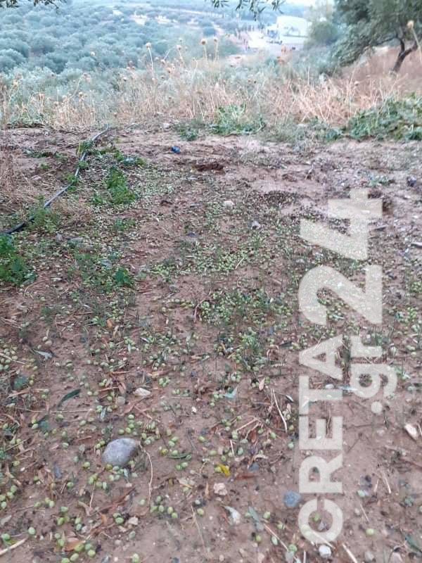 Οι καρποί σχηματίζουν ένα πυκνό στρώμα στο έδαφος ενώ οι παραγωγοί τονίζουν πως ακόμα και εκείνοι που έχουν μείνει πάνω στα δέντρα έχουν υποστεί ζημιά.
