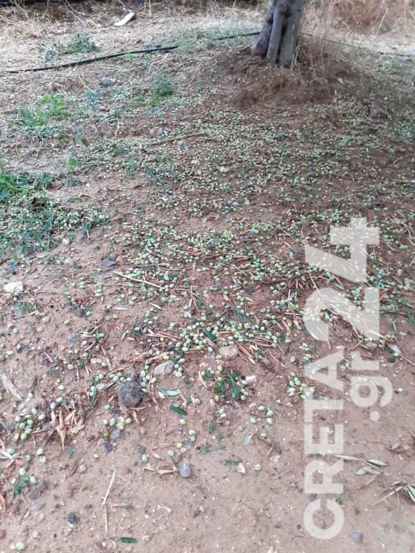 Μεγάλες ζημιές στα ελαιόδεντρα προκάλεσε η έντονη χαλαζόπτωση που σημειώθηκε τα ξημερώματα στις βόρειες περιοχές του Ηρακλείου.