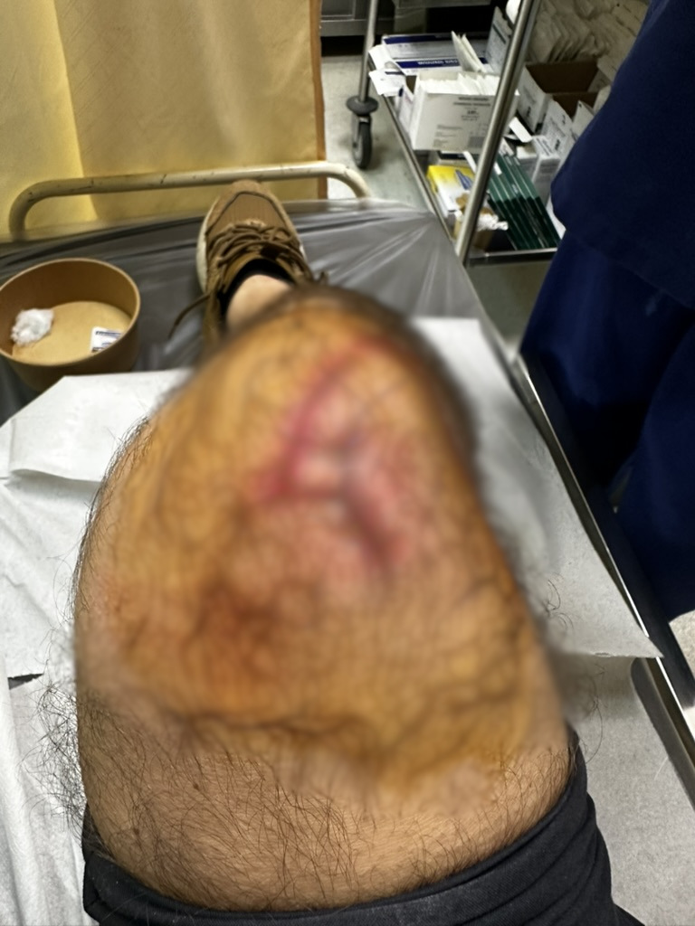 Αποτέλεσμα ήταν βαθύ σχίσιμο στο πόδι.