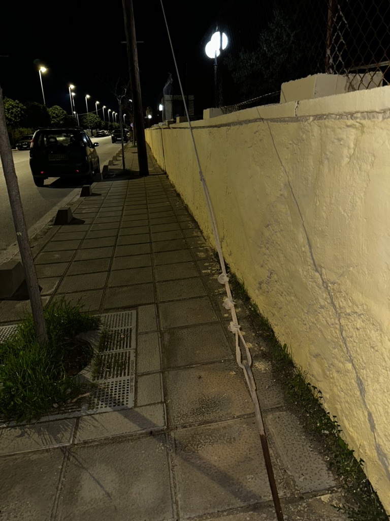 Το πιο ανησυχητικό είναι ότι το σύρμα παραμένει μέχρι σήμερα στο ίδιο επικίνδυνο σημείο, αποτελώντας σοβαρό κίνδυνο για οποιονδήποτε πεζό.