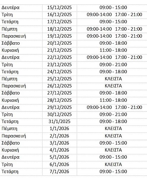 Αναλυτικά το εορταστικό ωράριο στο Ηράκλειο: