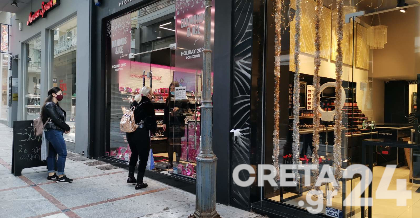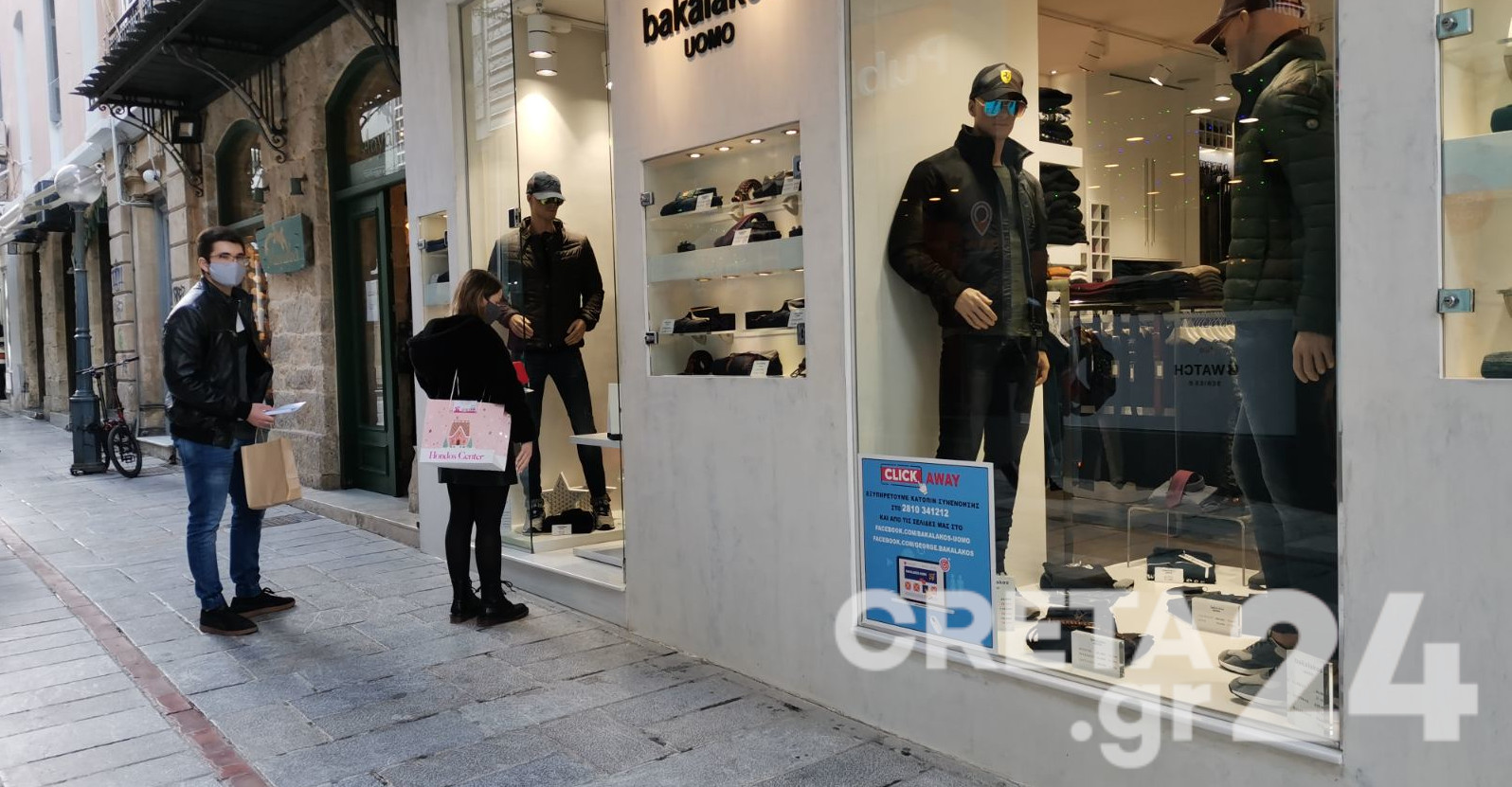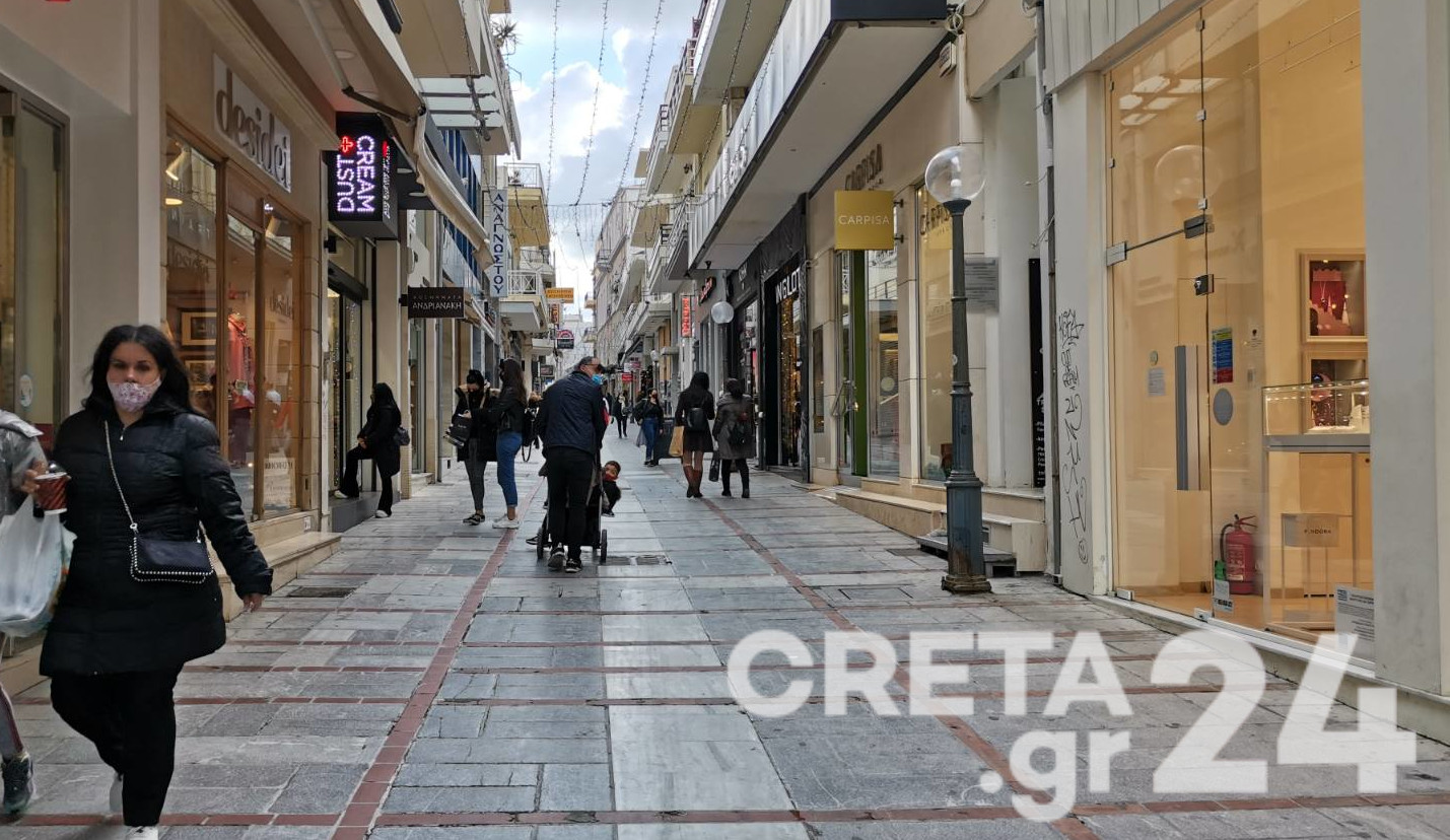 Το Creta24 βρέθηκε στο κέντρο και κατέγραψε τις εικόνες, με τους Ηρακλειώτες να περιμένουν έξω από τα καταστήματα να παραλάβουν τις αγορές τους.