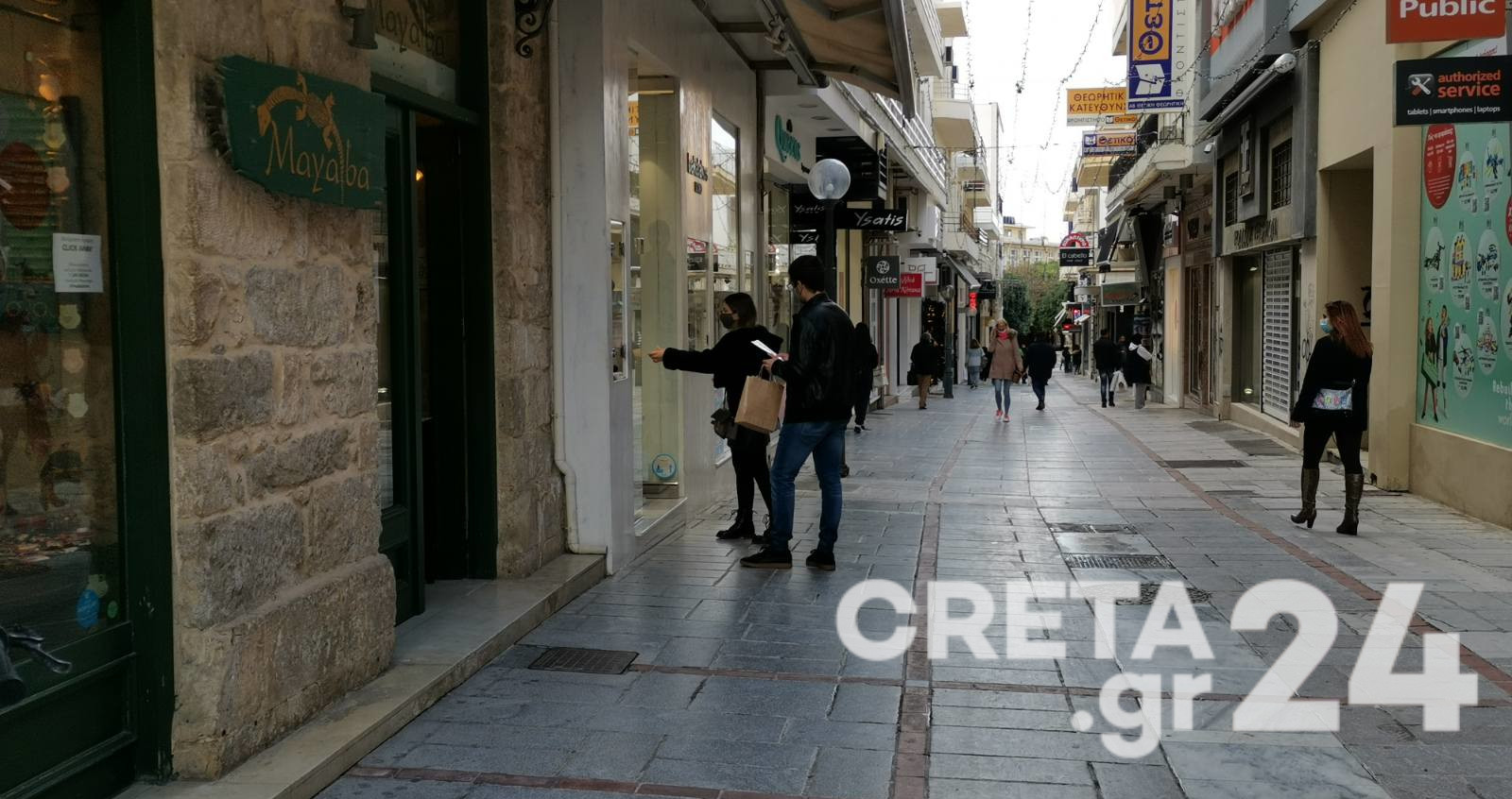 Aν και ήταν αρκετοί αυτοί που απλά έκαναν τον περίπατό τους στους πεζόδρομους του κέντρου, η κίνηση και στα καταστήματα -για την ακρίβεια έξω από αυτά- φάνηκε να είναι ελαφρώς αυξημένη με το click away να δείχνει ότι «ζεσταίνεται» τις παραμονές των Χριστουγέννων.