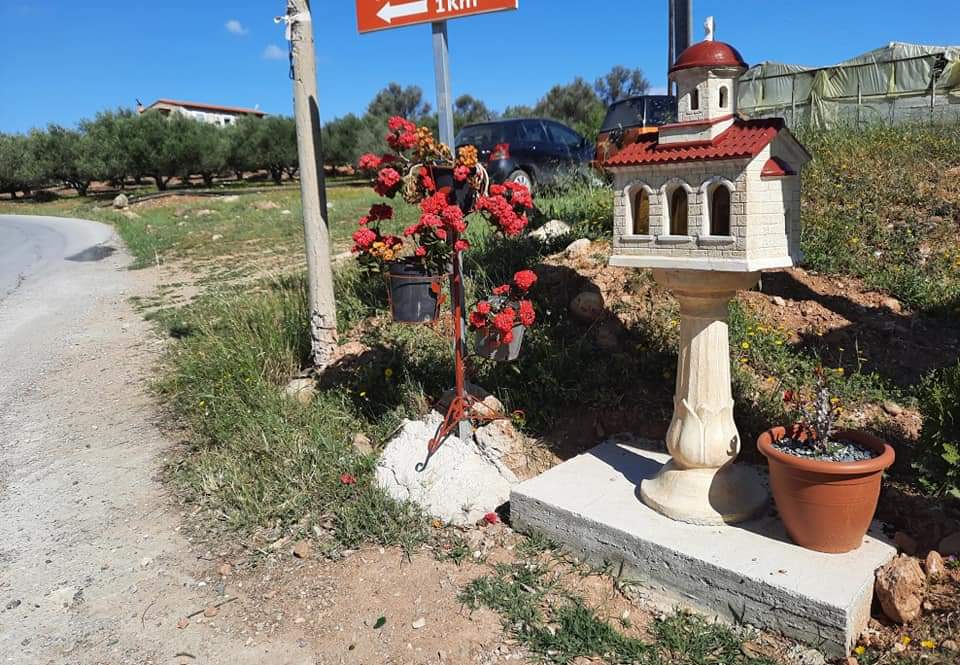 Ένα εικονοστάσι στη μνήμη της 37χρονης Όλγας και της 3χρονης κόρης της στήθηκε στη διασταύρωση όπου «χάθηκαν» μετά το φρικτό τροχαίο.