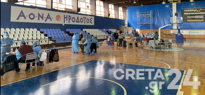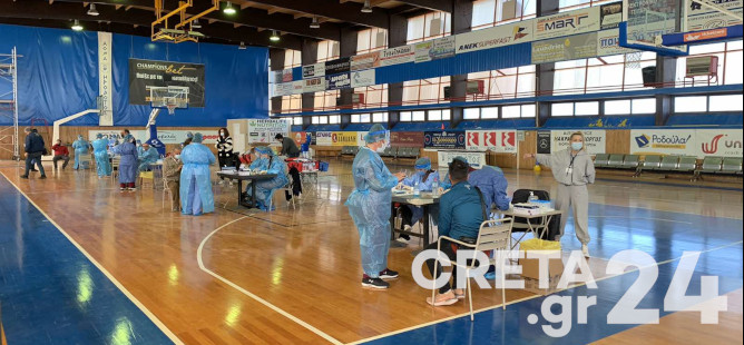Κινητές Μονάδες του ΕΟΔΥ πραγματοποιούν από το πρωί rapid test στο κλειστό γυμναστήριο Μελίνα Μερκούρη στην Αλικαρνασσό.