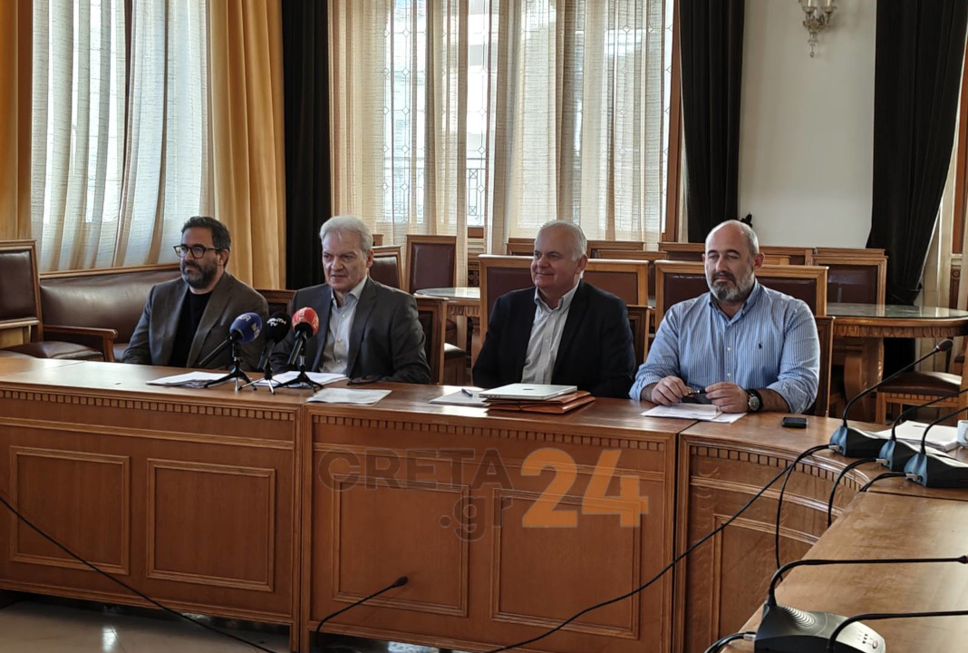 Ο Δήμαρχος Ηρακλείου και οι Αντιδήμαρχοι Οικονομικών & Τουρισμού, Γιώργος Αγριμανάκης, Τεχνικών Υποδομών & Βιώσιμης Κινητικότητας, Γιώργος Σισαμάκης και Καθαριότητας, Περιβάλλοντος & Ενέργειας Νίκος Γιαλιτάκης παρουσίασαν αναλυτικά τις προτάσεις για τα δημοτικά τέλη.