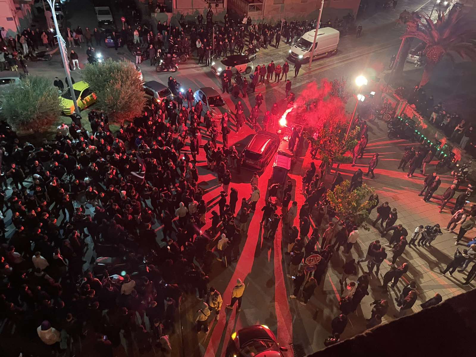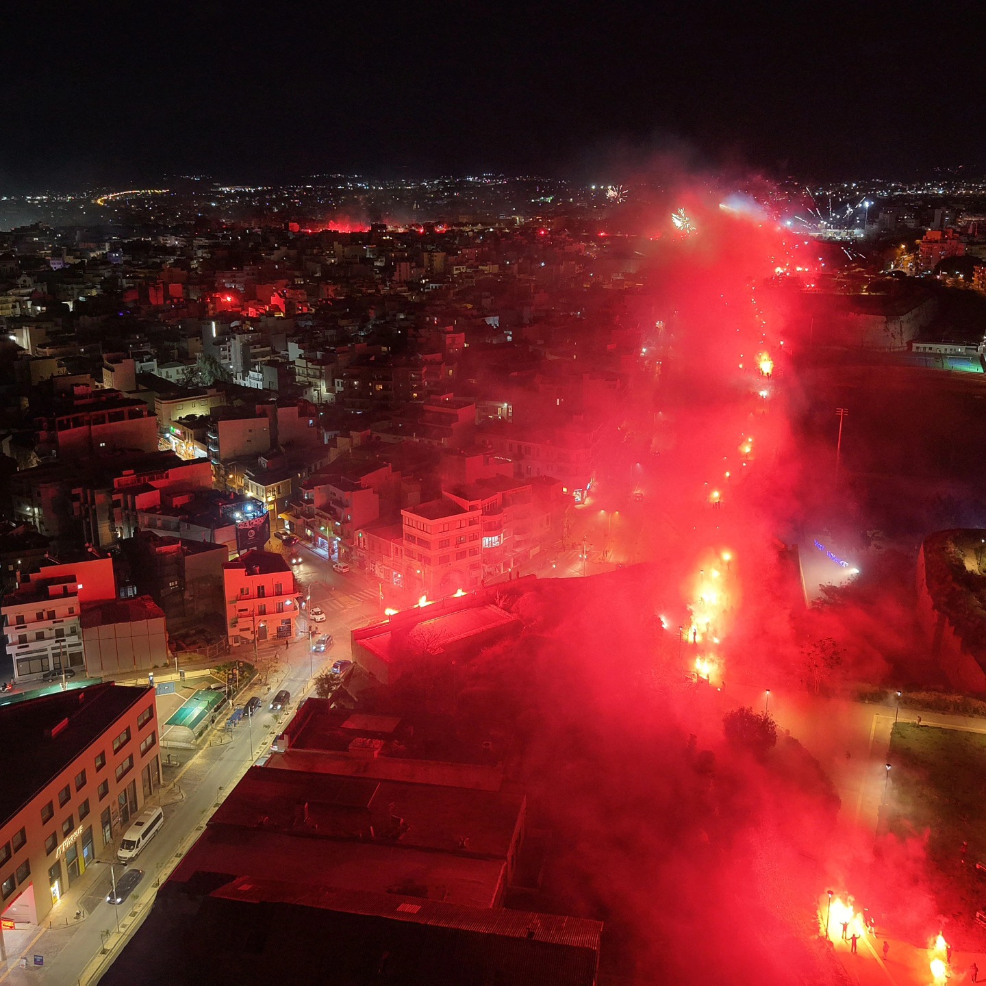 Οι φίλαθλοι του συλλόγου συμμετείχαν οργανωμένα από διάφορα σημεία της πόλης, ανάβοντας καπνογόνα και εκτοξεύοντας βεγγαλικά, ενώ ταυτόχρονα ακούγονταν συνθήματα υπέρ της ομάδας. Παράλληλα, πραγματοποιήθηκε και μηχανοκίνητη πορεία.