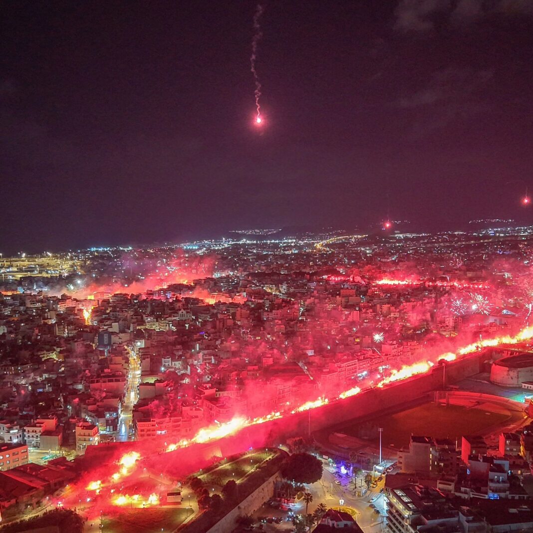 Μπροστά από την Λότζια στήθηκε ένα ξεχωριστό event, με το συγκρότημα του Γιώργου Γλυκοκόκαλου, αθλητές του Ερασιτέχνη ΟΦΗ, που κάνουν αγώνες επίδειξης, αλλά και βεγγαλικά.