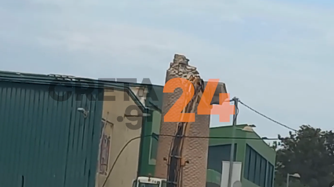 Μάλιστα, η κατασκευή, μετά από έλεγχο κλιμακίου της Πολεοδομίας Ηρακλείου, κρίθηκε επικινδύνως ετοιμόρροπη καθώς παρουσίαζε και κλίση και ρηγματώσεις, όπως φαίνεται και στην φωτογραφία.