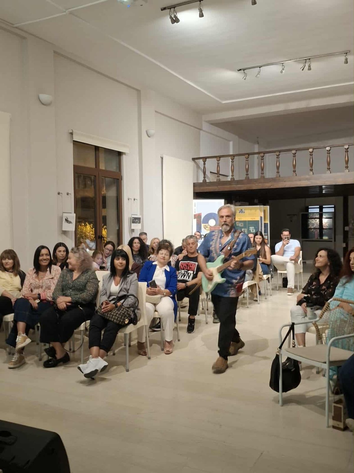 Η βραδιά πλαισιώθηκε μουσικά με κιθάρα και τραγούδι από τον Βαγγέλη Λυράκη, προσδίδοντας μια όμορφη και συναισθηματική νότα στο κλίμα της εκδήλωσης.