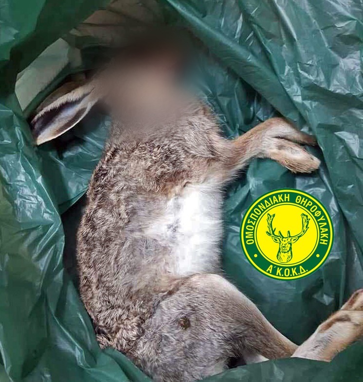 Στον έλεγχο που πραγματοποιήθηκε, εντοπίστηκε ένας πρόσφατα θηρευμένος λαγός. Στην ερώτηση που του έθεσαν για τον λαγό, απάντησε ότι είχε βγάλει τα σκυλιά για εκπαίδευση κι ότι αυτά τον θήρευσαν.